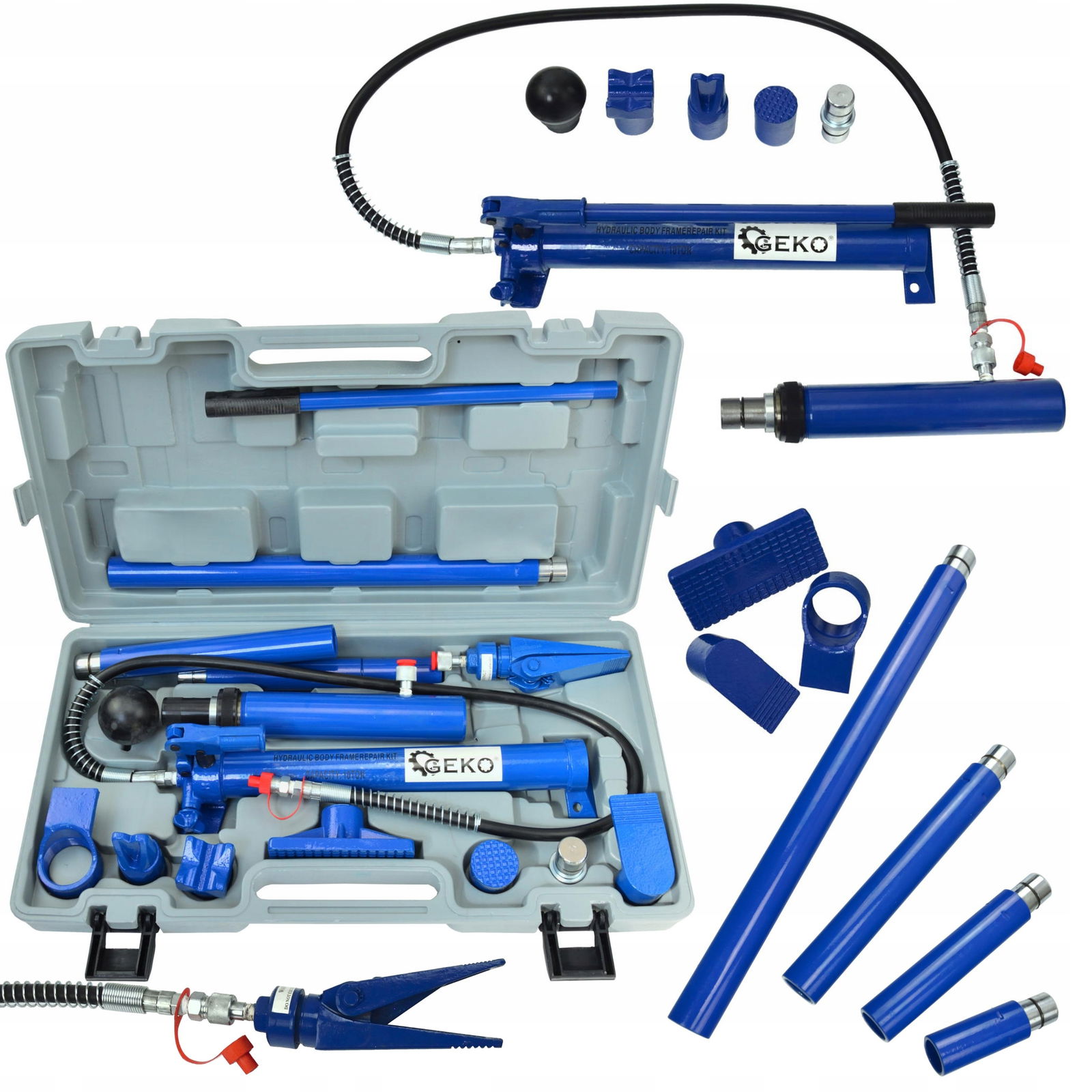Zestaw profesjonalnych rozpieraków 10 ton w walizce. Zestaw został wyposażony w wydajną pompę hydrauliczną dzięki której wykonasz następujące prace: podnoszenie, ściąganie, zginanie, prostowanie oraz rozpieranie.