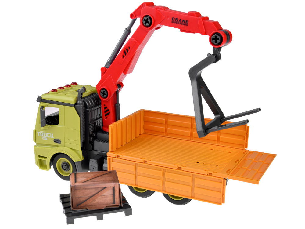 Dźwig można złożyć samodzielnie od podstaw, co stanowi nie lada wyzwanie dla małych konstruktorów i rozwija ich cierpliwość. Pojazd porusza się dzięki napędowi typu friction, który sprawia, że ciężarówka sama porusza się do przodu na płaskiej powierzchni.