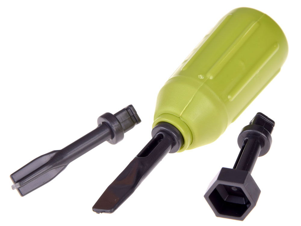 Zestaw zawiera dźwig, śrubokręt z trzema wymiennymi końcówkami oraz baterie (3x AG13), które są niezbędne do zasilania zabawki. Wymiary dźwigu to 30 cm x 10 cm x 12 cm. Całość zapakowana jest w kolorowe pudełko, idealne na prezent.