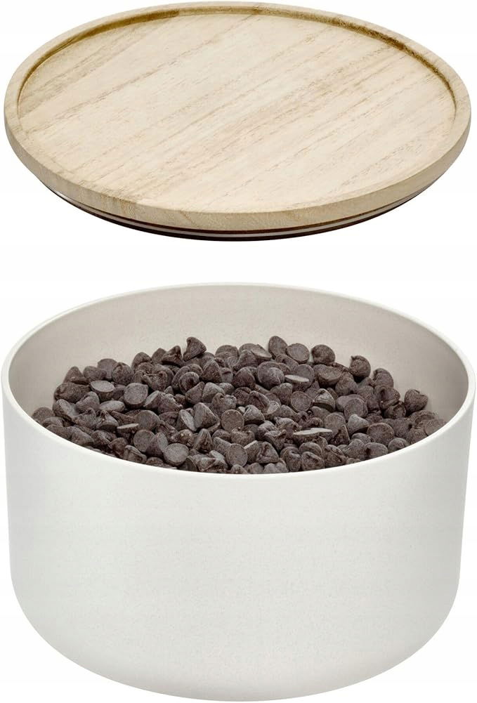 Wykonany z trwałej bio-żywicy z recyklingowanego plastiku, ten pojemnik do przechowywania sprawdzi się w codziennym użytkowaniu; pojemnik z kokosa i pokrywa z naturalnego drewna paulowni będą pasować do wystroju każdej kuchni; pojemnik z pokrywką można myć wyłącznie ręcznie