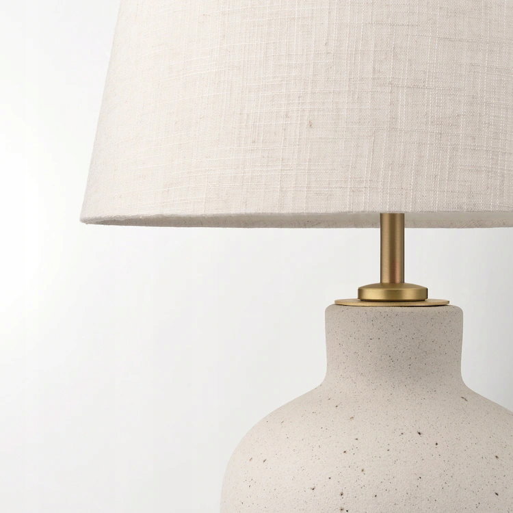Lampa stołowa BLIDVÄDER wyróżnia się subtelnym, ale eleganckim designem. Jej kremowa podstawa z ceramiki w odcieniach beżu oraz tkaninowy klosz, który rozprzestrzenia ciepłe światło, tworzy przytulną atmosferę w każdym wnętrzu. Lampa doskonale sprawdzi się jako element dekoracyjny w salonie, sypialni lub na stoliku nocnym, zapewniając zarówno funkcjonalność, jak i estetykę.