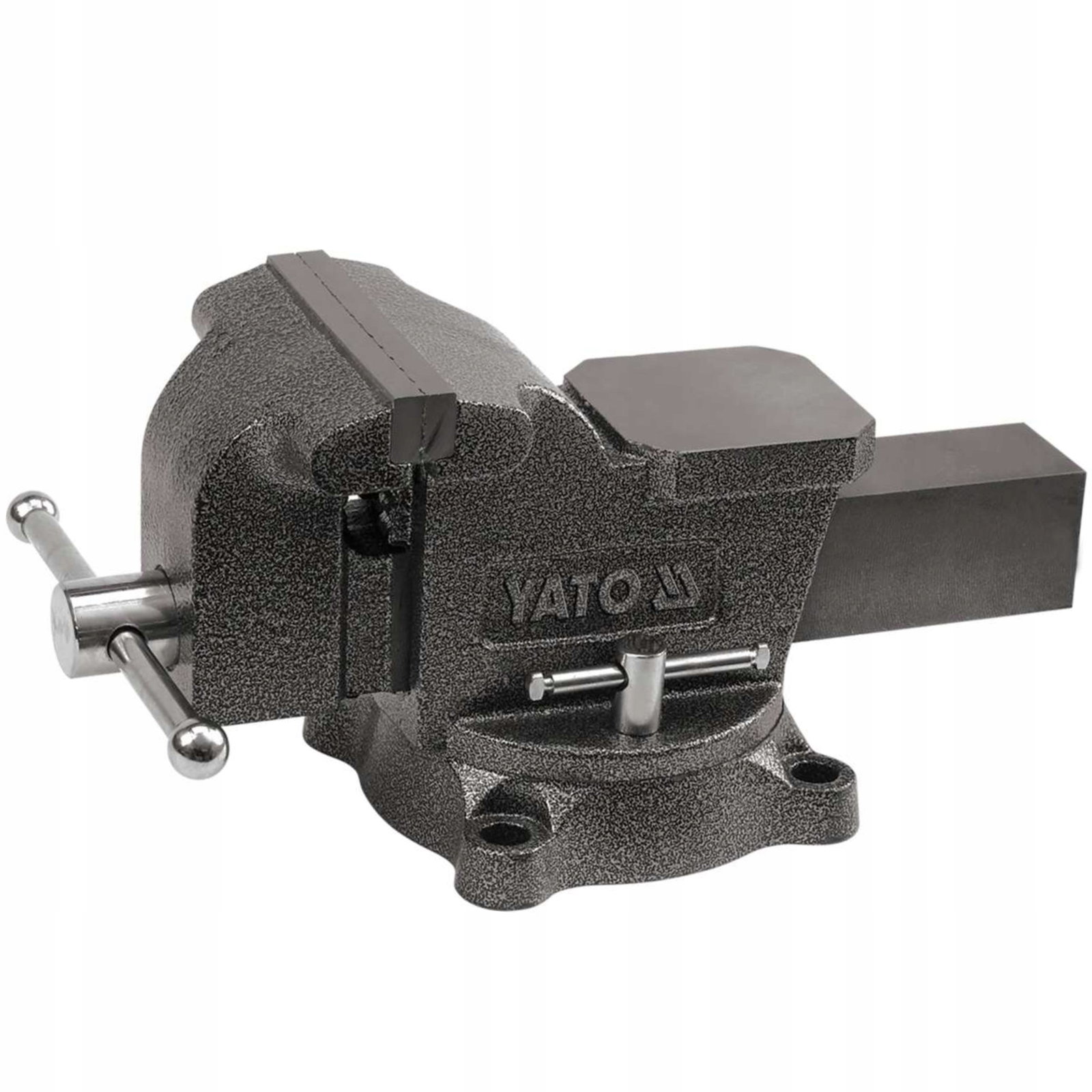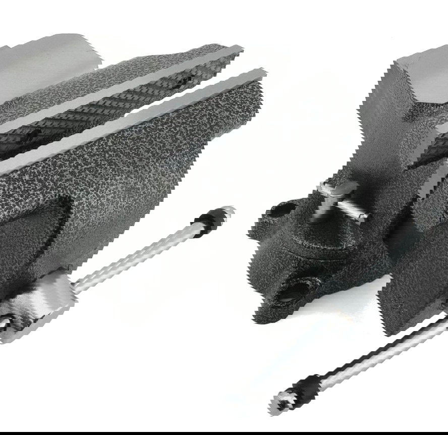 Imadło ślusarskie z korpusem wykonanym z żeliwa szarego, z wymiennymi szczękami 150 mm i kowadełkiem z utwardzanej stali.