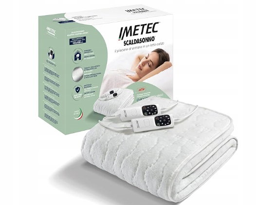 Koc Imetec Adapto Recreo Sleeping Warmmer, podwójny 150 x 160 cm, szybkie ogrzewanie, spersonalizowana temperatura, hipoalergiczna tkanina z recyklingu włókna, pralna, 2 kontrolery, 6 temperatur, wyprodukowane we Włoszech