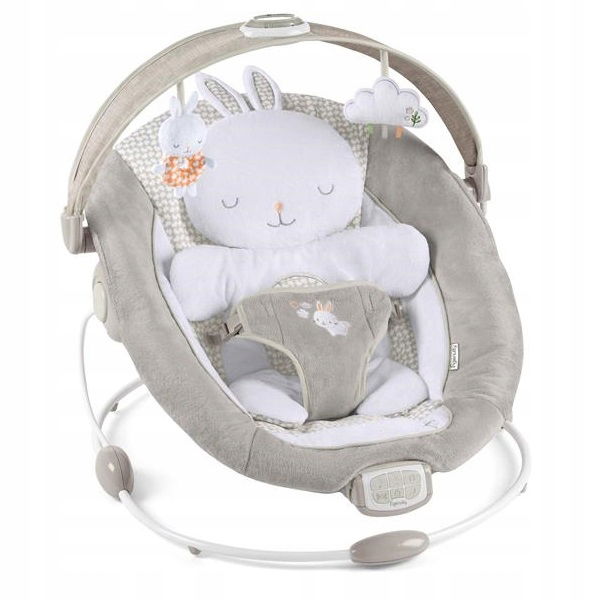 Leżaczek Ingenuity z motywem białego króliczka pokryty jest przyjemną w dotyku tkaniną. Produkt został wyposażony w odpowiednio wyprofilowane siedzisko oraz zagłówek by zapewnić najmłodszym użytkownikom komfort na najwyższym poziomie podczas zabawy.