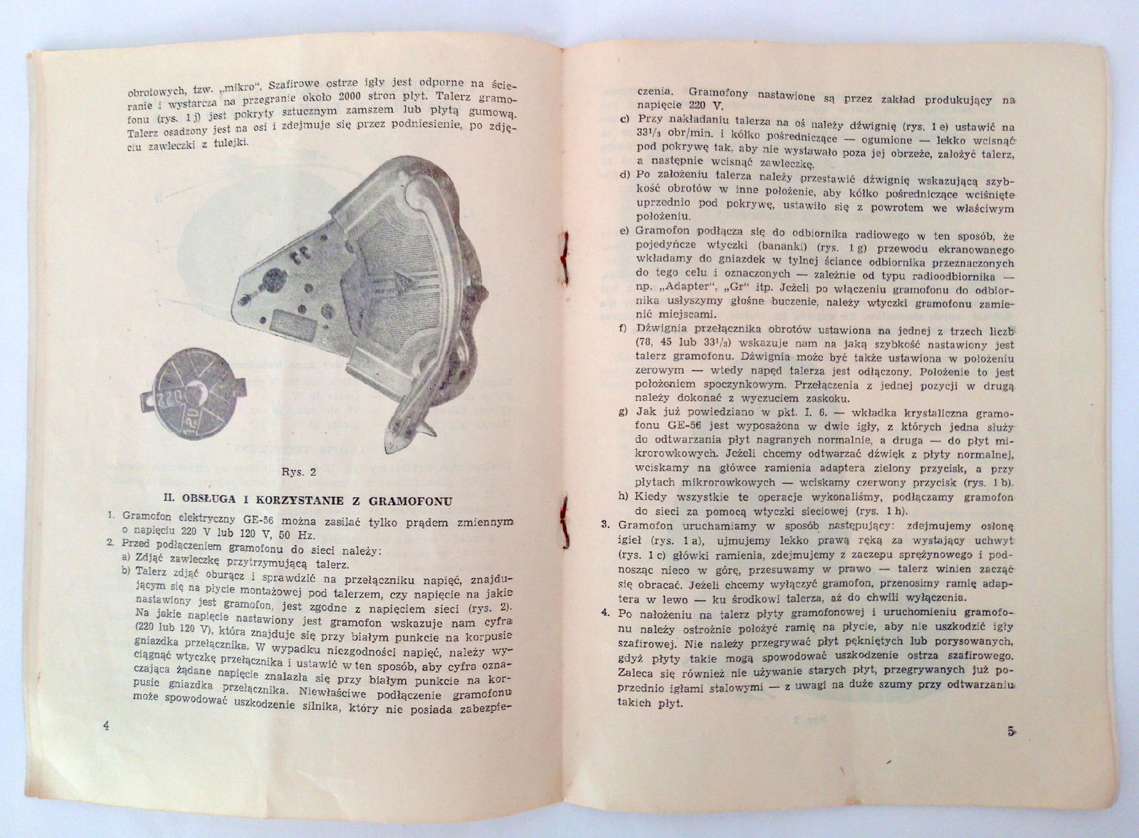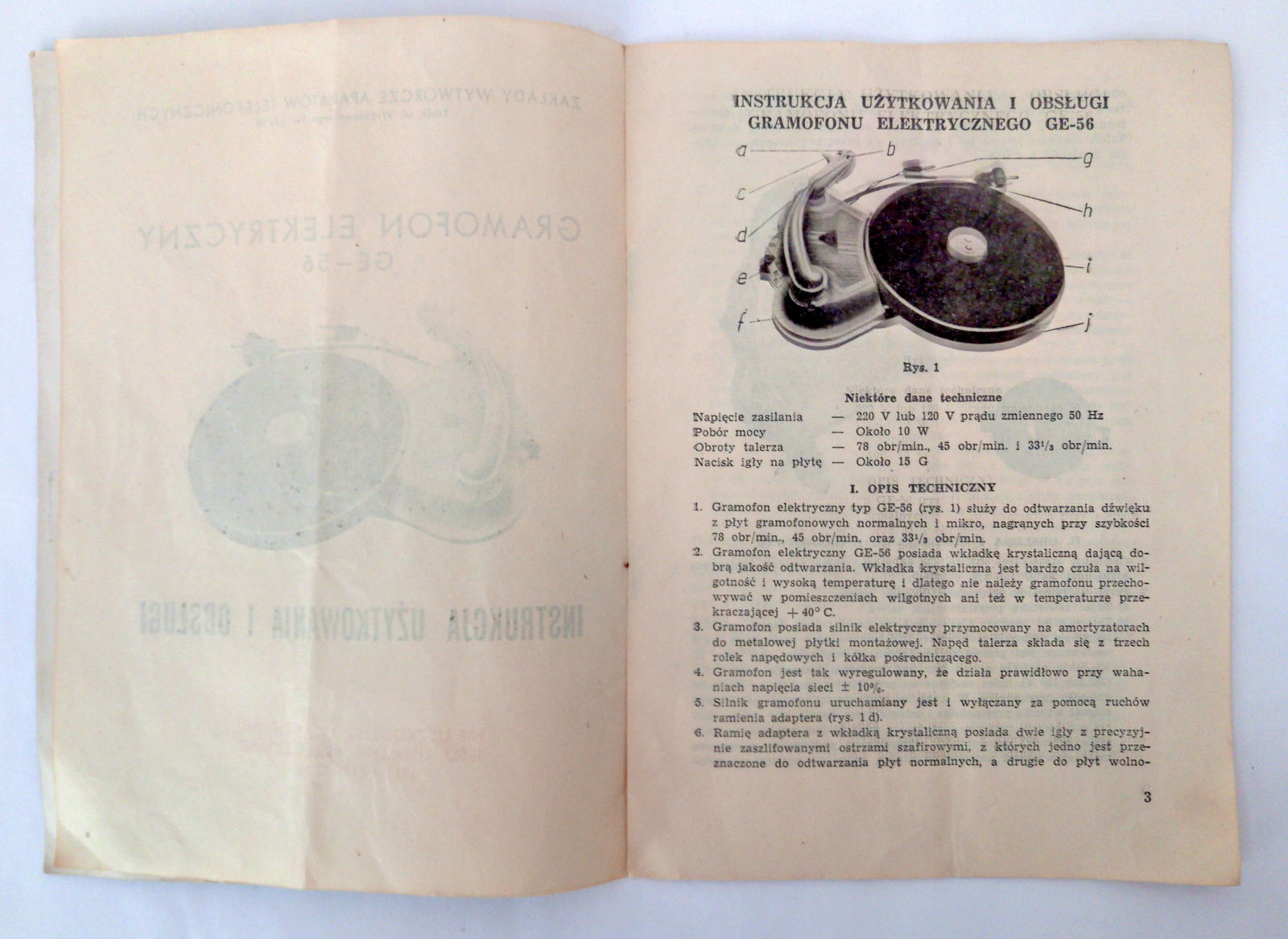 Firma New Rockers oferuje Państwu ciekawą pamiątkę z czasów minionych, ale znowu nie aż tak odległych. Jest nią Instrukcja obsługi gramofonu T4 G.E.-56. proszę obejrzeć zdjęcia - przedstawiają one stan przedmiotu sprzedaży.