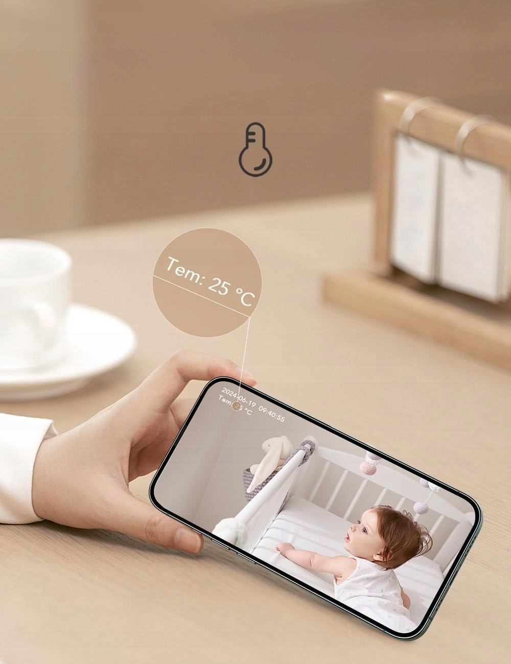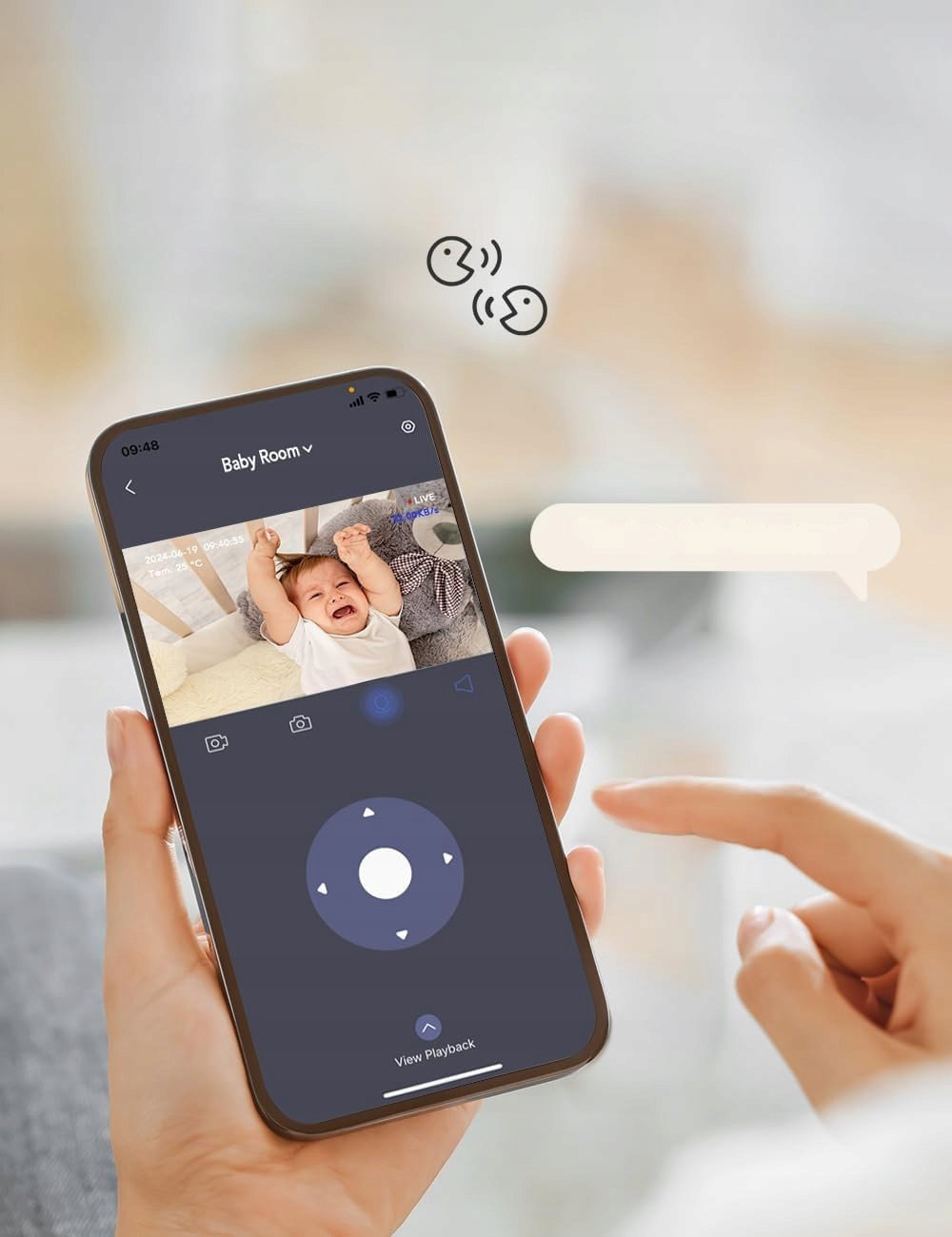 - Inteligentne funkcje AI: zaawansowany system rozpoznawania ruchu, płaczu i dźwięków reaguje natychmiast, wysyłając powiadomienie na telefon, gdy dziecko Cię potrzebuje. Wbudowany mikrofon i głośnik umożliwiają dwukierunkową komunikację, dzięki czemu można uspokoić dziecko głosem, bez konieczności wchodzenia do pokoju. Funkcja śledzenia AI automatycznie podąża za ruchem dziecka, zapewniając stałe kadrowanie nawet przy zmianie pozycji.