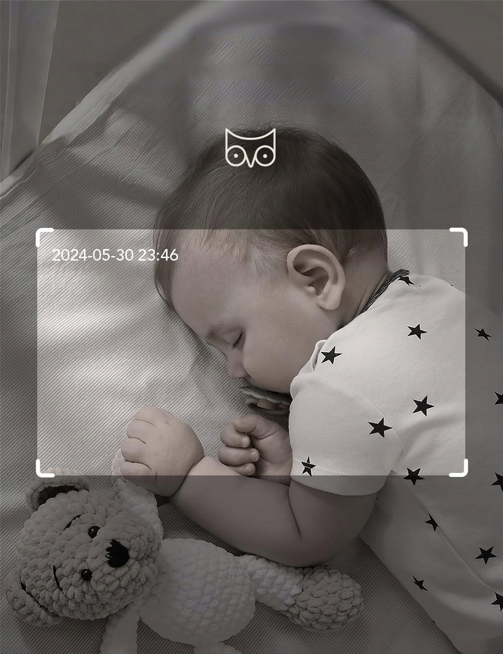 - Obraz i tryb nocny: wysoka rozdzielczość 2K (1920p) gwarantuje wyraźny, szczegółowy obraz zarówno w dzień, jak i w nocy. Wbudowany tryb noktowizyjny na podczerwień zapewnia czytelny obraz nawet przy całkowitym braku światła, a delikatne kołysanki i lampka LED tworzą uspokajającą atmosferę sprzyjającą zasypianiu dziecka. Dzięki temu rodzic może obserwować, reagować i jednocześnie wspierać spokojny sen malucha.
