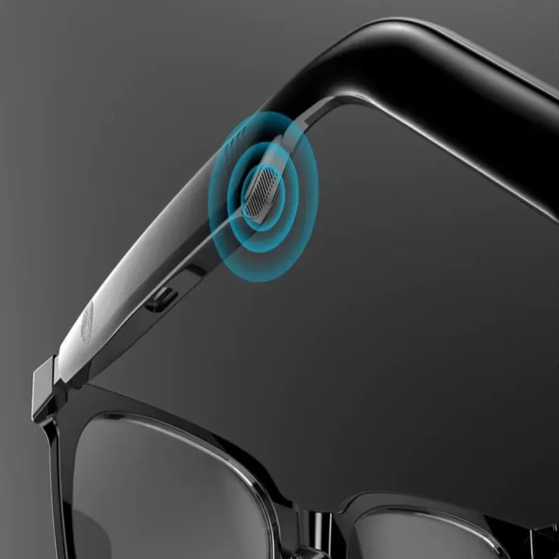 Okulary wyposażone są w dyskretne głośniki umieszczone w zausznikach, które umożliwiają słuchanie muzyki i odbieranie połączeń. Funkcja hands-free pozwala prowadzić rozmowy bez wyciągania telefonu – idealne podczas pracy, spaceru czy jazdy.