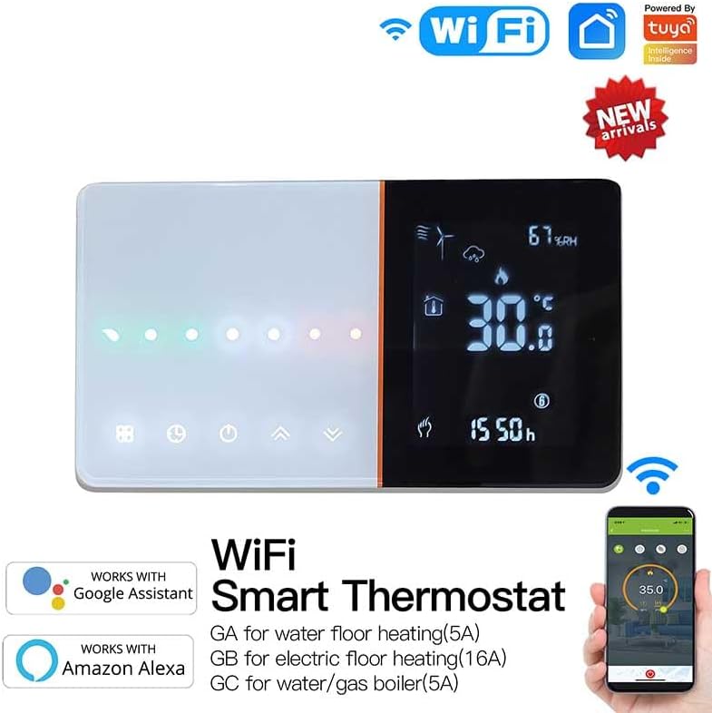 Pełna kontrola smart: Dzięki integracji z aplikacjami Tuya Smart oraz Smart Life, możesz zarządzać ogrzewaniem z dowolnego miejsca na świecie. Urządzenie współpracuje również z asystentami głosowymi Alexa oraz Google Assistant.