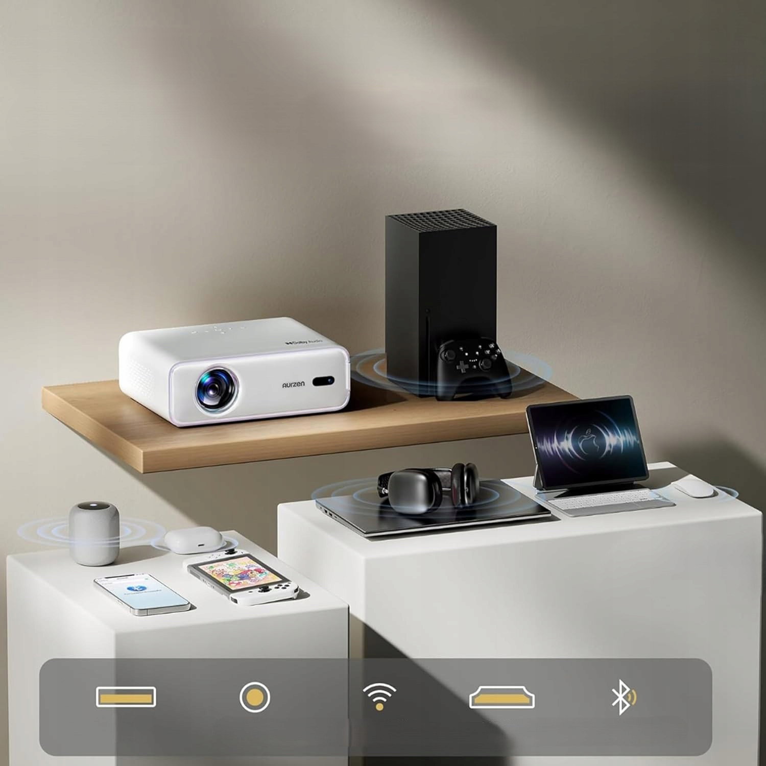 Aurzen Eazze D1 obsługuje najnowszą technologię WiFi 6, co gwarantuje stabilne i szybkie przesyłanie strumieniowe treści w rozdzielczości 4K. Dwukierunkowy moduł Bluetooth umożliwia nie tylko połączenie z bezprzewodowymi głośnikami i słuchawkami, ale także używanie projektora jako niezależnego głośnika Bluetooth.