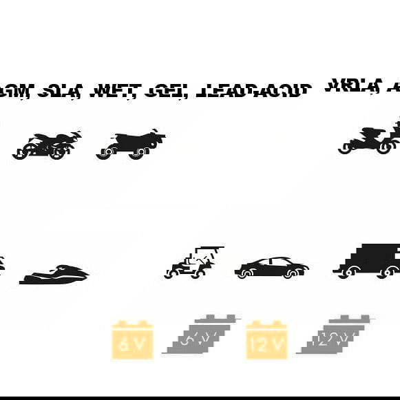 Nadaje się do ładowania wielu typów akumulatorów zarówno w: skuterach, motocyklach, quadach jak i do ładowania akumulatorów samochodowych czy busów. Ładuje akumulatory 6V i 12V.