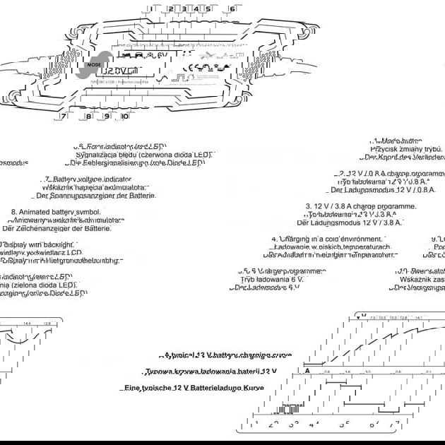 - Funkcja diagnostyczna, odsiarczanie, miękki start, ładowanie, analiza, zimowanie, pulsowanie