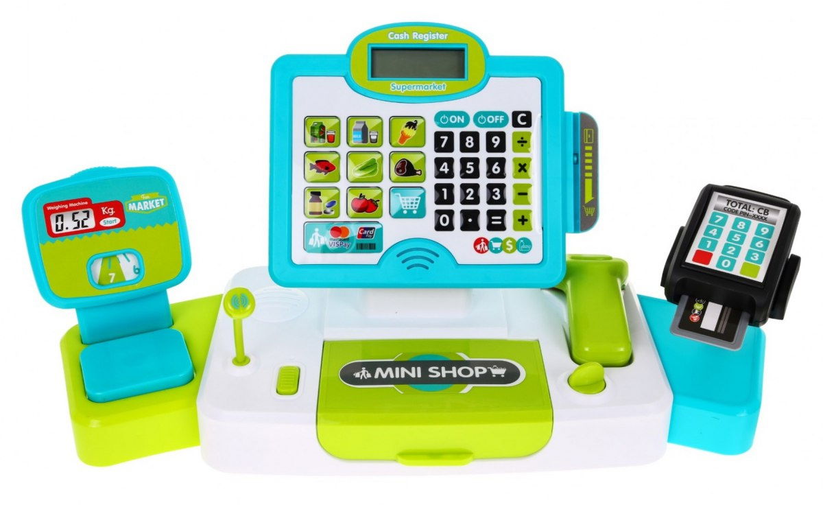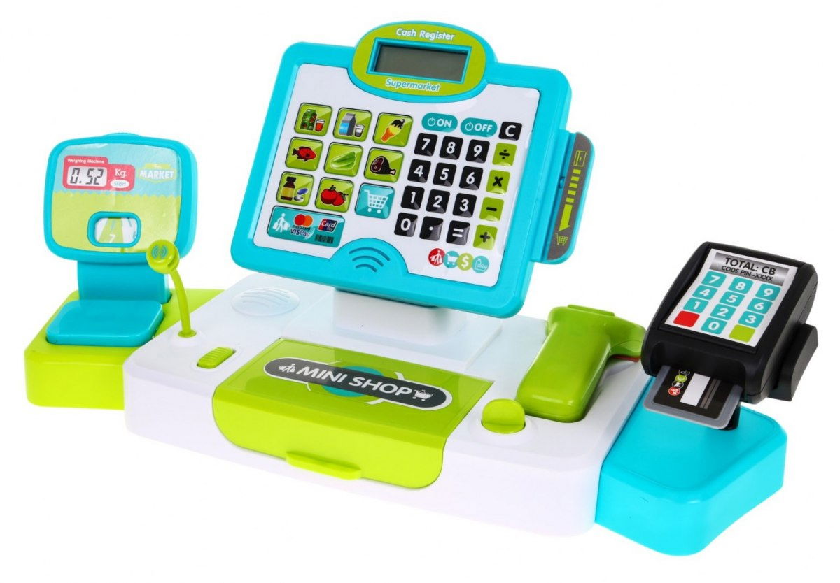 Zabawka "Kasa z Panelem Dotykowym" to idealna propozycja dla małych sprzedawców, którzy chcą wcielić się w rolę prawdziwego kasjera. Ta kasa wyposażona jest w dotykowy panel, kalkulator, atrapę czytnika kart, wagi, mikrofonu oraz skanera. Dzięki otwieranej szufladce na banknoty i monety, dzieci mogą odtwarzać realistyczne sceny z zakupami. Zestaw zawiera także karty VIP, kredytową, banknoty, monety, atrapy produktów spożywczych oraz kartoniki z jedzeniem. Zasilana bateriami, kasa emituje efekty dźwiękowe i świetlne, co dodatkowo wzbogaca zabawę. Wymiary kasy wynoszą około 42 cm x 21 cm x 16 cm, a opakowania ok. 41 cm x 28,5 cm x 9,5 cm. Pozwól dziecku rozwinąć wyobraźnię i umiejętności matematyczne podczas fascynującej zabawy na sklepowym frontcie!