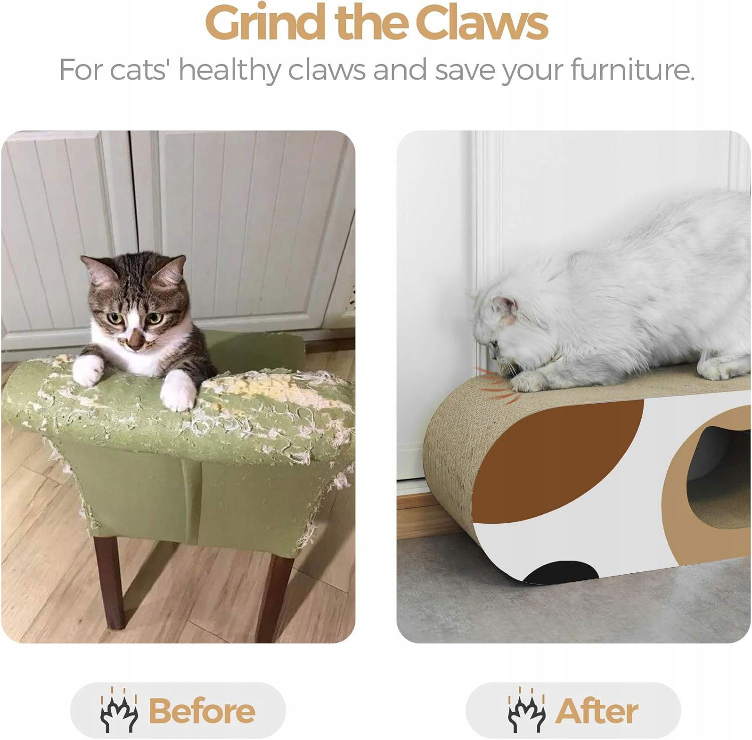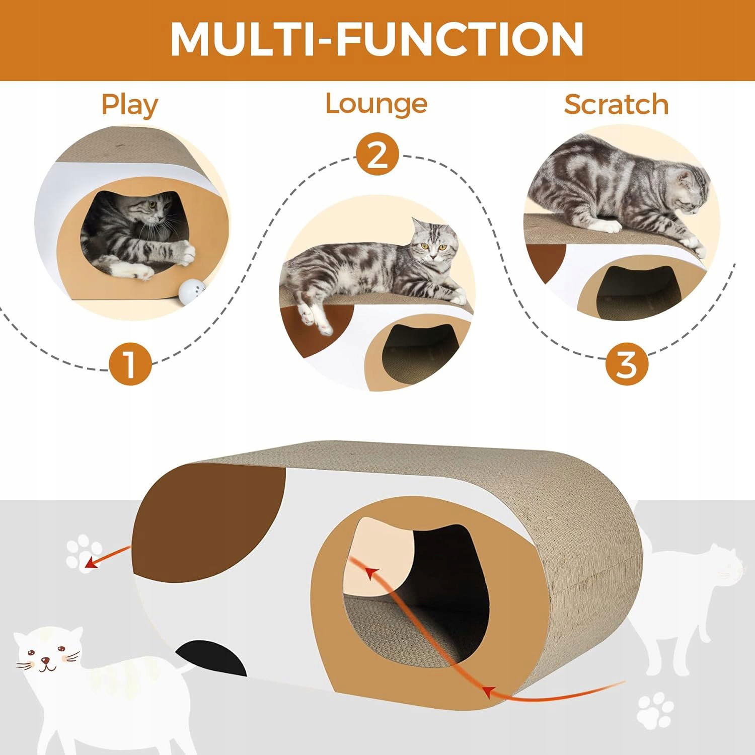 - Wielofunkcyjny drapak - To nie tylko prosta deska do drapania, ale także interaktywna zabawka dla kotów. Kociaki mogą gonić i walczyć w tunelu. To także toaleta, w której koty mogą się wylegiwać i leżeć.