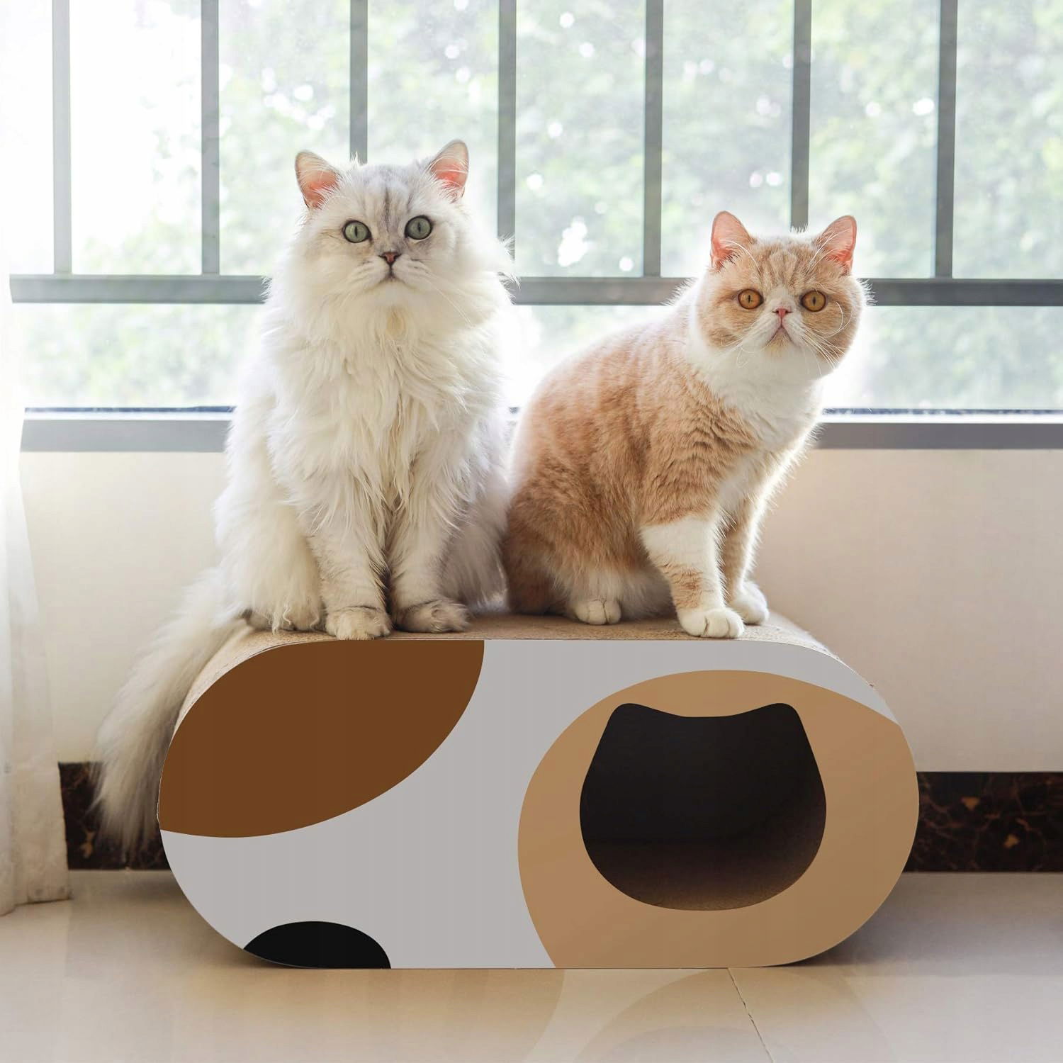 Interaktywny tektórowy drapak dla kota, Zabawka, Ukryty domek 23"x10", Drapak dla kotów, Trwały Drapak, w pełni recyklingowalny