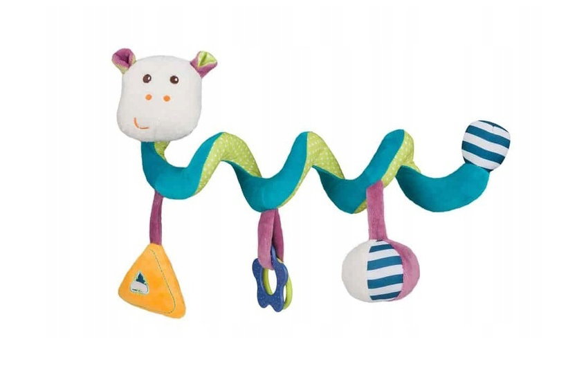 funkcjonalność - kształt spirali umożliwia zamocowanie zawieszki w łóżeczku, foteliku oraz w wózku.