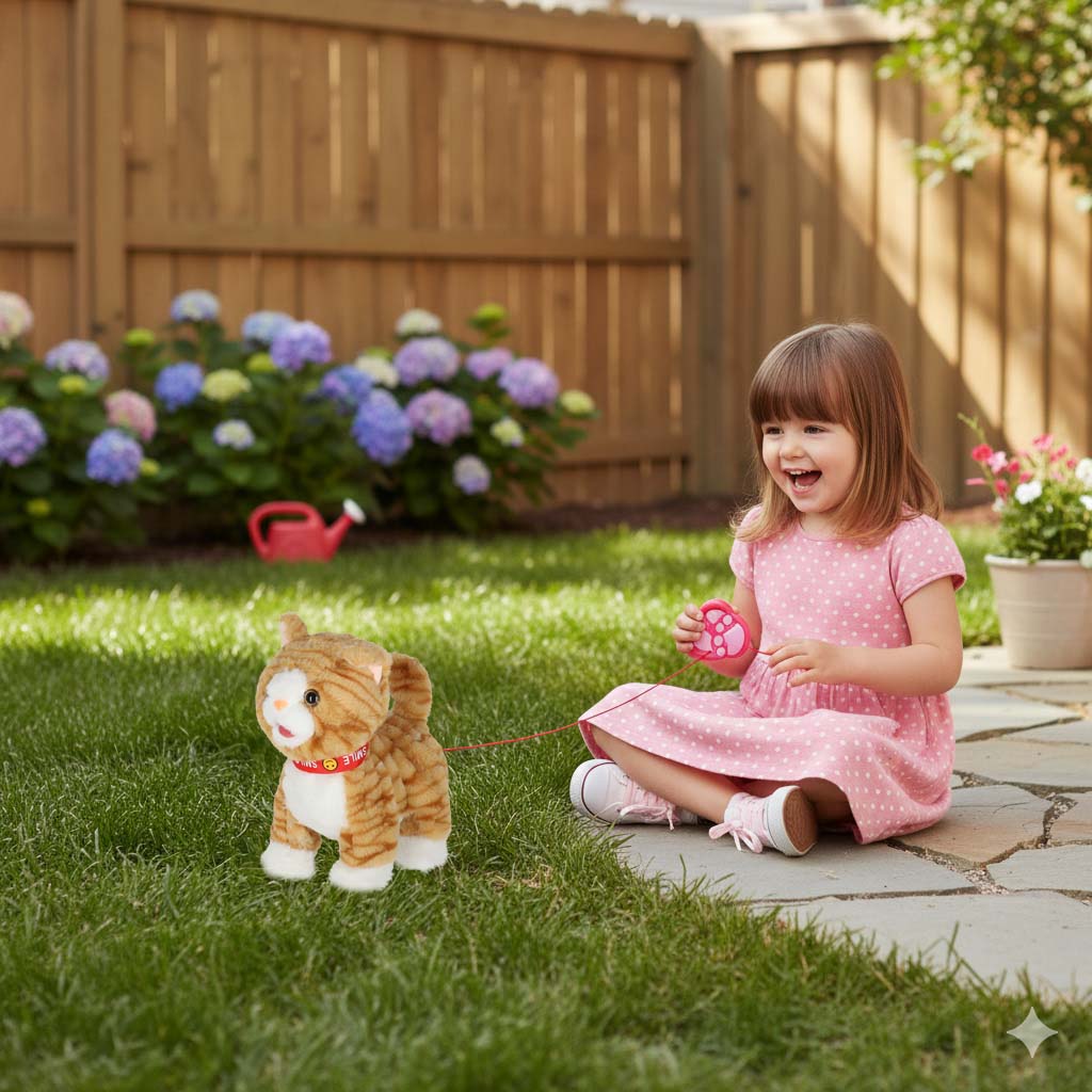 UCZY I BAWI JEDNOCZEŚNIE - Ten uroczy kotek na smyczy to znacznie więcej niż zwykła pluszowa zabawka. Dzięki realistycznym ruchom, dźwiękom i miękkiemu futerku zachęca dziecko do opieki nad zwierzątkiem i budowania relacji. Maluch uczy się empatii, delikatności oraz odpowiedzialności za swojego „małego przyjaciela”. Kotek reaguje na dotyk – porusza głową, merda ogonem i miauczy, co sprawia, że każda zabawa staje się pełna emocji i ciepła.