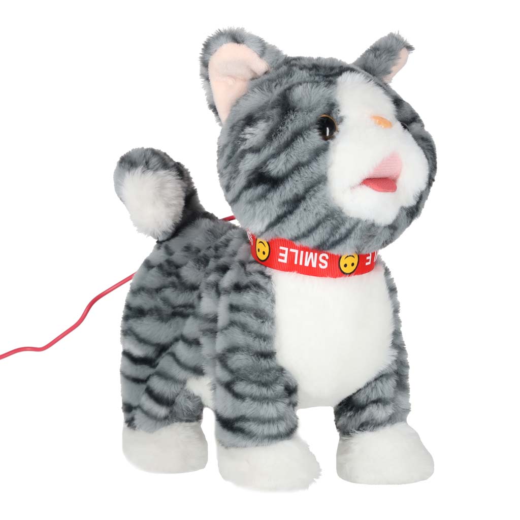 INTERAKTYWNY KOTEK PLUSZAK NA SMYCZY MIAUCZY CHODZI GRA ZABAWKA DLA DZIECI