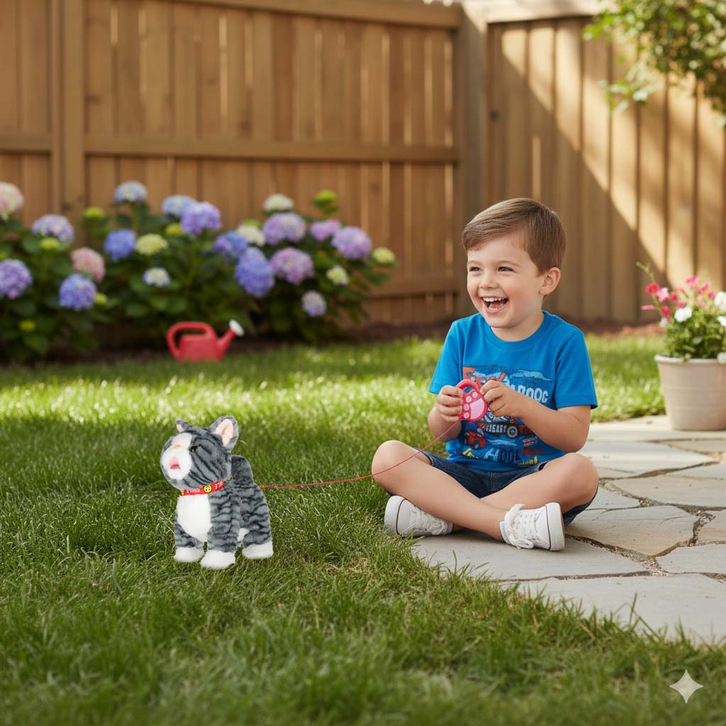 UCZY I BAWI JEDNOCZEŚNIE - Ten uroczy kotek na smyczy to znacznie więcej niż zwykła pluszowa zabawka. Dzięki realistycznym ruchom, dźwiękom i miękkiemu futerku zachęca dziecko do opieki nad zwierzątkiem i budowania relacji. Maluch uczy się empatii, delikatności oraz odpowiedzialności za swojego „małego przyjaciela”. Kotek reaguje na dotyk – porusza głową, merda ogonem i miauczy, co sprawia, że każda zabawa staje się pełna emocji i ciepła.
