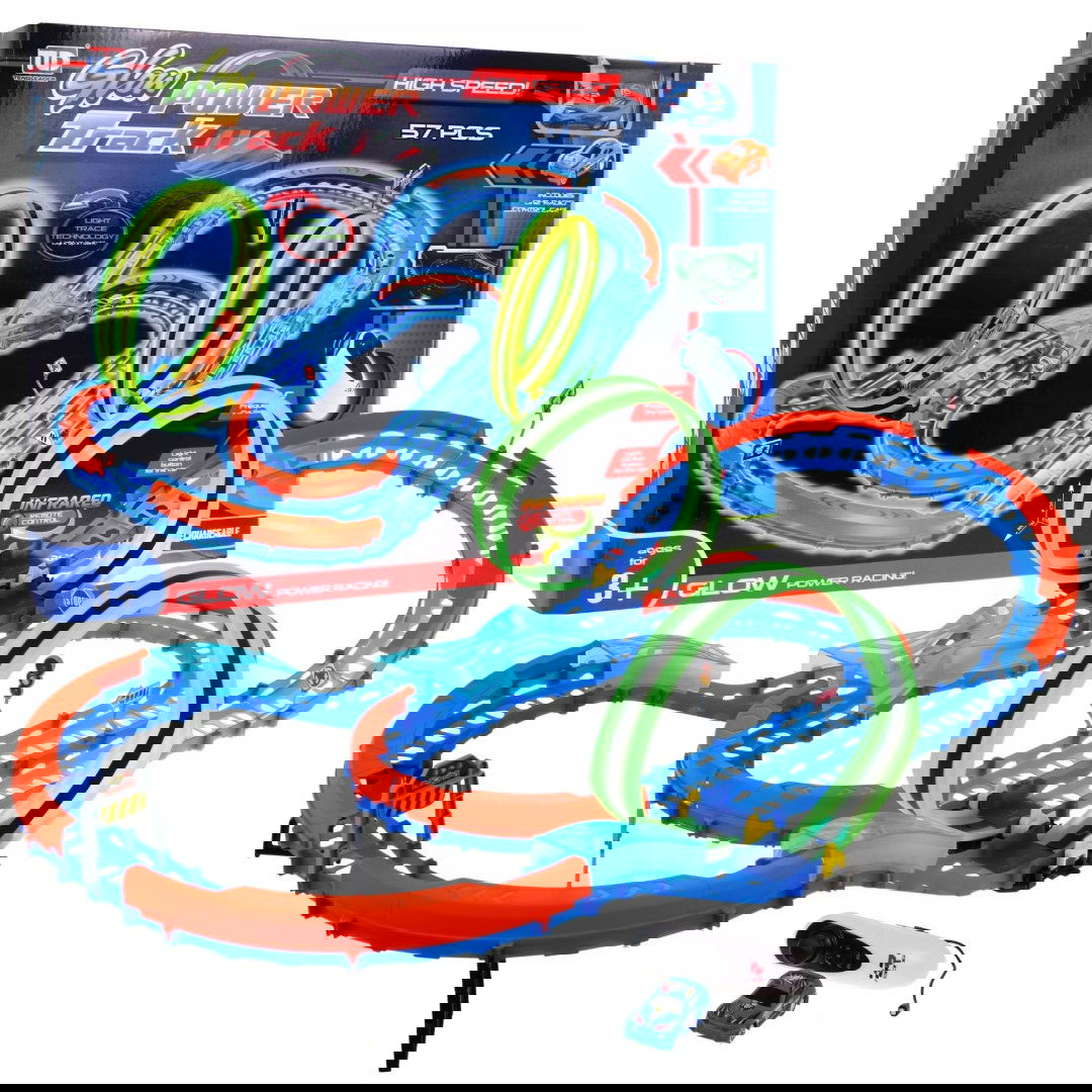Rozświetlaj swoją trasę nocą i baw się niesamowicie z Dużym Świecącym Torem 57 el. (ZKT.88804)! Ten imponujący tor z dwiema pętlami zapewni mnóstwo frajdy dla dzieci od 3 roku życia. Zasilany baterią typu 1 x 3,7V – autko (w zestawie) oraz bateriami typu 2 x AAA – pilot (brak w zestawie), ten fluorescencyjny tor świeci w ciemności, podczas gdy autko z podświetleniem LED tworzy magiczne efekty podczas jazdy. W zestawie znajdziesz tor, autko, pilot oraz kabel USB. Wymiary to: tor ok. 90 cm x 51 cm x 23 cm, autko ok. 7 cm x 3,5 cm, opakowanie ok. 54 cm x 36,5 cm x 7 cm. Odkryj świat światła i zabawy już dziś!