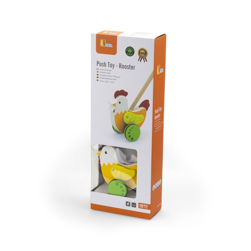 Rozpoczęcie pierwszych kroków dziecka staje się wyjątkowym przeżyciem dzięki drewnianemu pchaczowi z kogucikiem marki Viga. Kolorowy kogucik sprawia, że maluchy uczące się chodzić odkrywają radość i przyjemność podczas spacerów w domu lub na podwórku. Skrzydełka drewnianego pchacza poruszają się w zabawny sposób, zachęcając dziecko do aktywności fizycznej. Solidne wykonanie z drewna i nietoksyczne farby zapewniają trwałość i bezpieczeństwo zabawy. Gumowe elementy gwarantują cichą i bezpieczną jazdę, a kolorowy design przyciąga uwagę maluchów. Zabawka rozwija umiejętność chodzenia, koordynację ruchową, ciekawość oraz wyobraźnię podczas ruchu. Dzięki pchaczowi z kogucikiem maluchy mogą rozwijać swoje umiejętności w sposób zabawny i bezpieczny.
