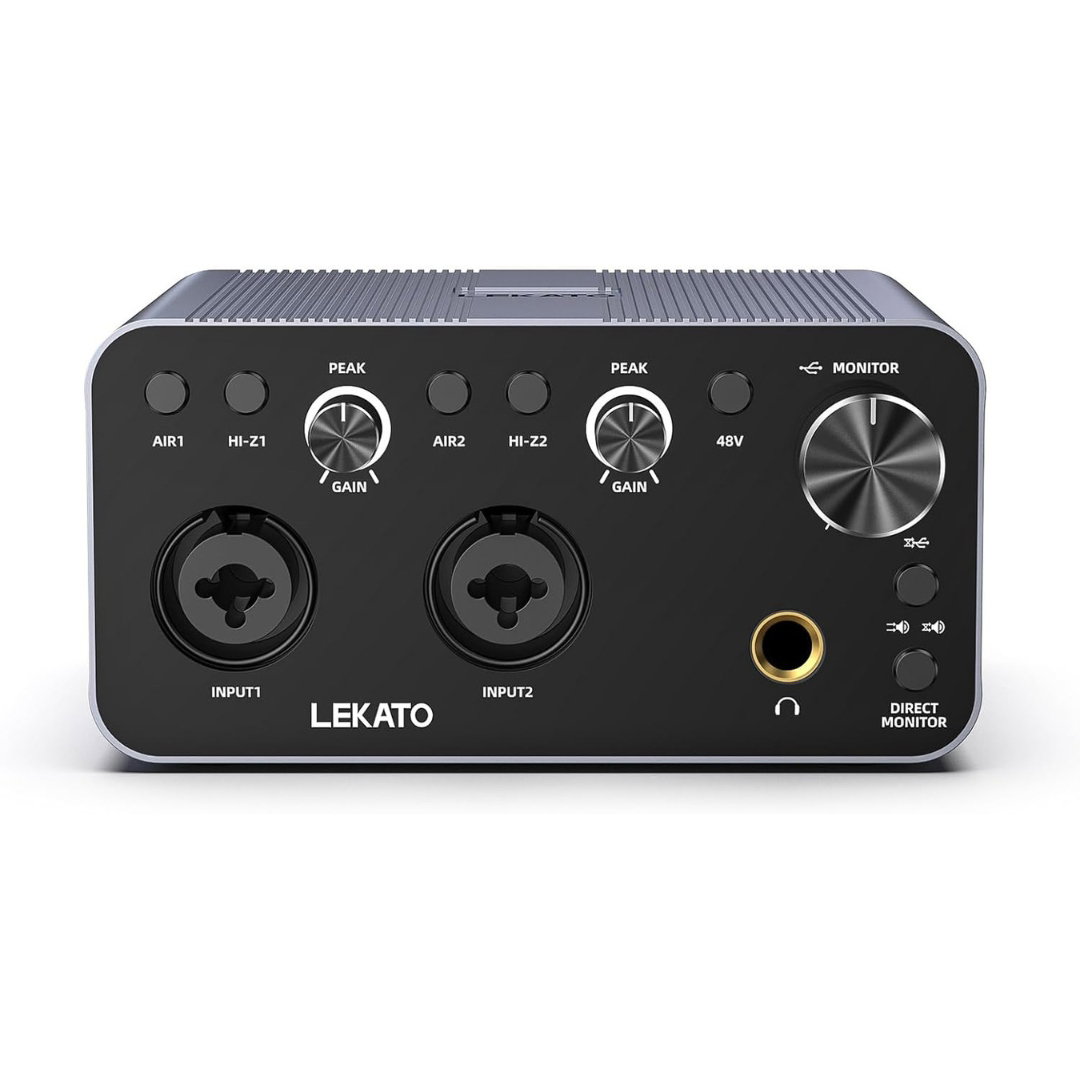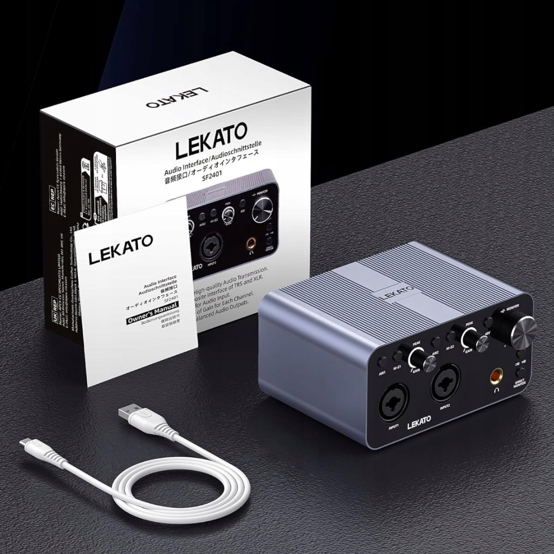 - Zastosowanie: interfejs audio USB LEKATO wykorzystywany jest do nagrywania wokalu, instrumentów oraz innych źródeł dźwięku w domowym studiu nagraniowym lub podczas pracy mobilnej z komputerem i smartfonem. Sprawdza się w produkcji muzycznej, tworzeniu podcastów, nagrywaniu materiałów audio do filmów oraz prowadzeniu transmisji na żywo w internecie. Umożliwia także podłączenie gitary elektrycznej i mikrofonu w celu ćwiczeń, nagrań demonstracyjnych, pracy twórczej oraz realizacji projektów muzycznych.