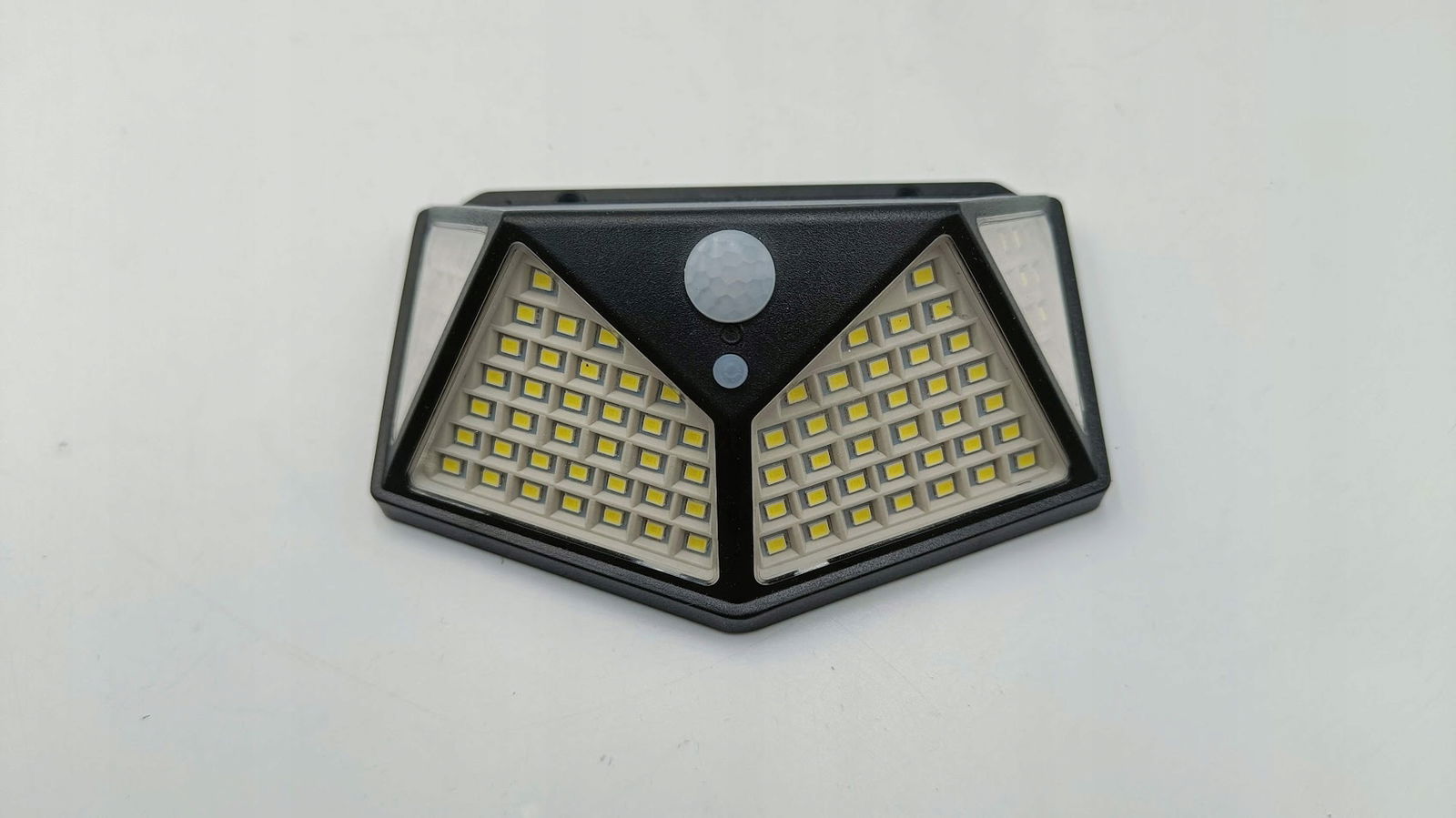 【Super Jasna Zewnętrzna Lampa Solarna LED】 Wyposażona w 100 super jasnych lamp solarnych LED, trójstronne oświetlenie o kącie 270° oraz lampa solarna o mocy 2200 mAh i jasności 1000 lumenów z czujnikiem ruchu o kącie 120º. Doskonała do oświetlania ogrodu w nocy.