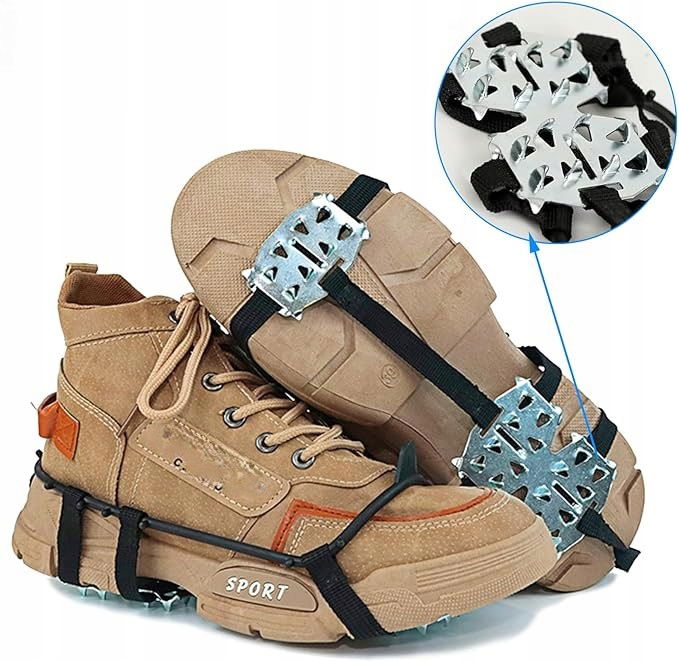 Łatwy montaż: Kolce są bardzo wygodne w noszeniu i można je założyć i zdjąć w kilka sekund. Są bardzo stabilne, wygodne i idealnie pasują do butów. Można je łatwo przymocować do botków, trampek, obuwia codziennego, a nawet wieczorowego.