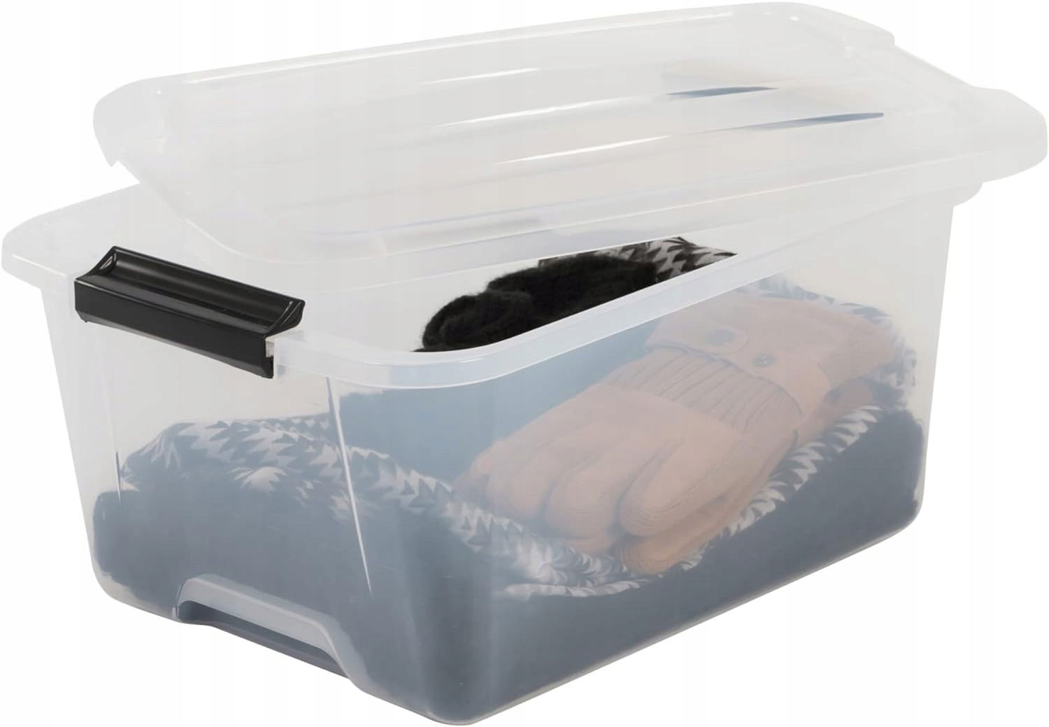 Iris Ohyama, Plastikowe pudełka do przechowywania z pokrywą i klipsami zamykającymi, 15 L, Zestaw 4 szt