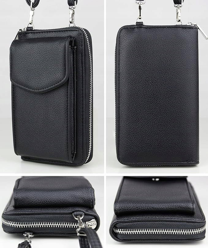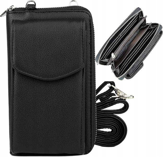 irisaa Portfel damski z kieszenią na telefon komórkowy, ochrona RFID i wieloma przegródkami na karty, torba na telefon komórkowy Crossbody z portmonetką, mała torba na ramię z regulowanym paskiem - czarny