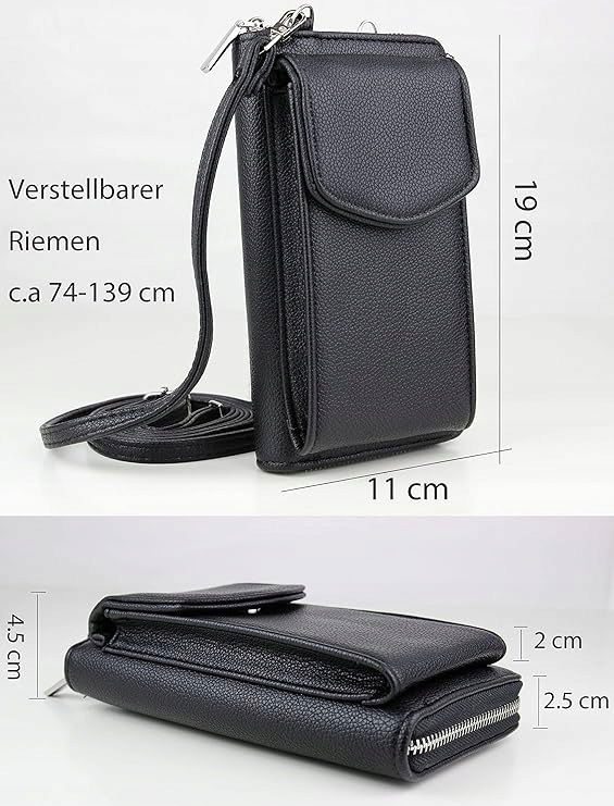 - Klasyczna mała torba na ramię na telefon komórkowy i portfel do zawieszenia o wymiarach 11 cm x 4 cm x 19 cm (długość x szerokość x wysokość), kieszeń na telefon komórkowy o wymiarach 9 cm x 1,5 cm x 16,5 cm, posiada 1 regulowany podwójny pasek na ramię maks. 147 cm, nadaje się zarówno dla dorosłych, jak i dla dzieci. Szczegółowe szczegóły można zobaczyć na zdjęciach.