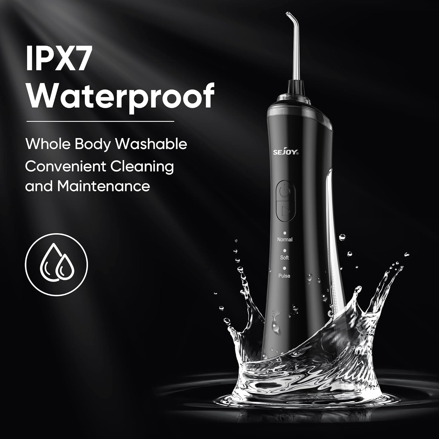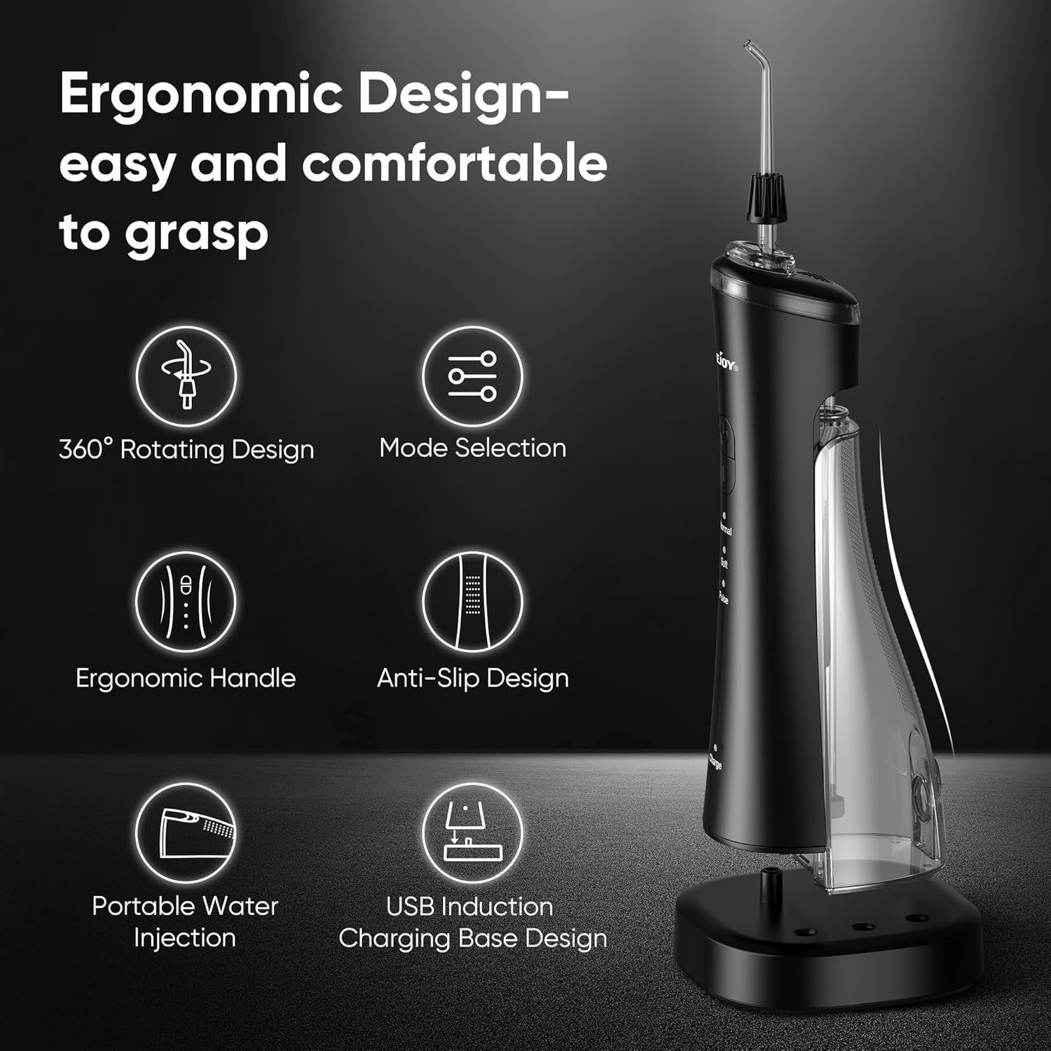 - Ten irygator jest ładowany od podstawy, co jest wygodniejsze. Dzięki podwójnym pierścieniom uszczelniającym irygator niezawodnie zapobiega wyciekaniu wody, może być używany do prysznica w łazience i można go prać. Dobry partner w podróży lub w podróży służbowej.