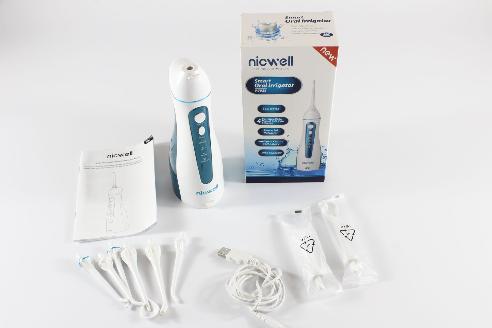 Irygator do jamy ustnej Nicwell IPX7 4 tryby USB 21 dni pracy