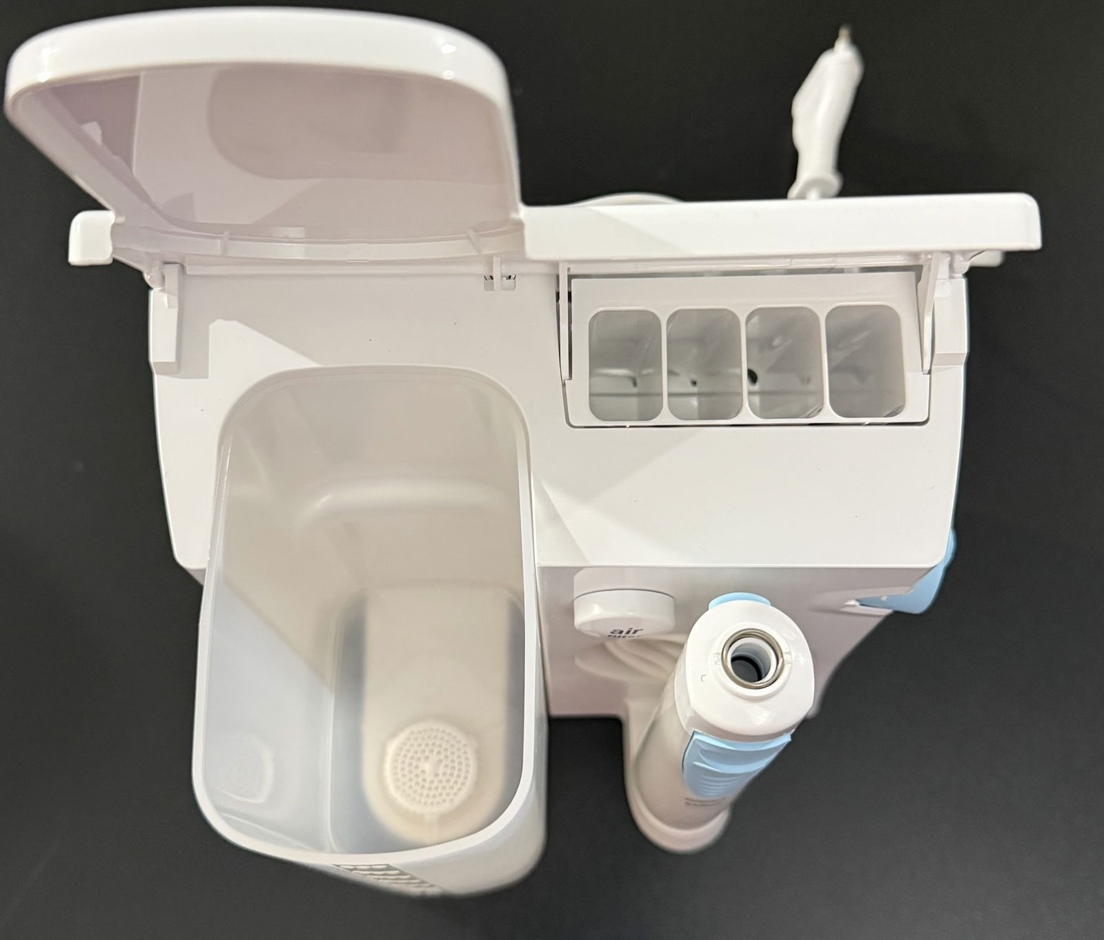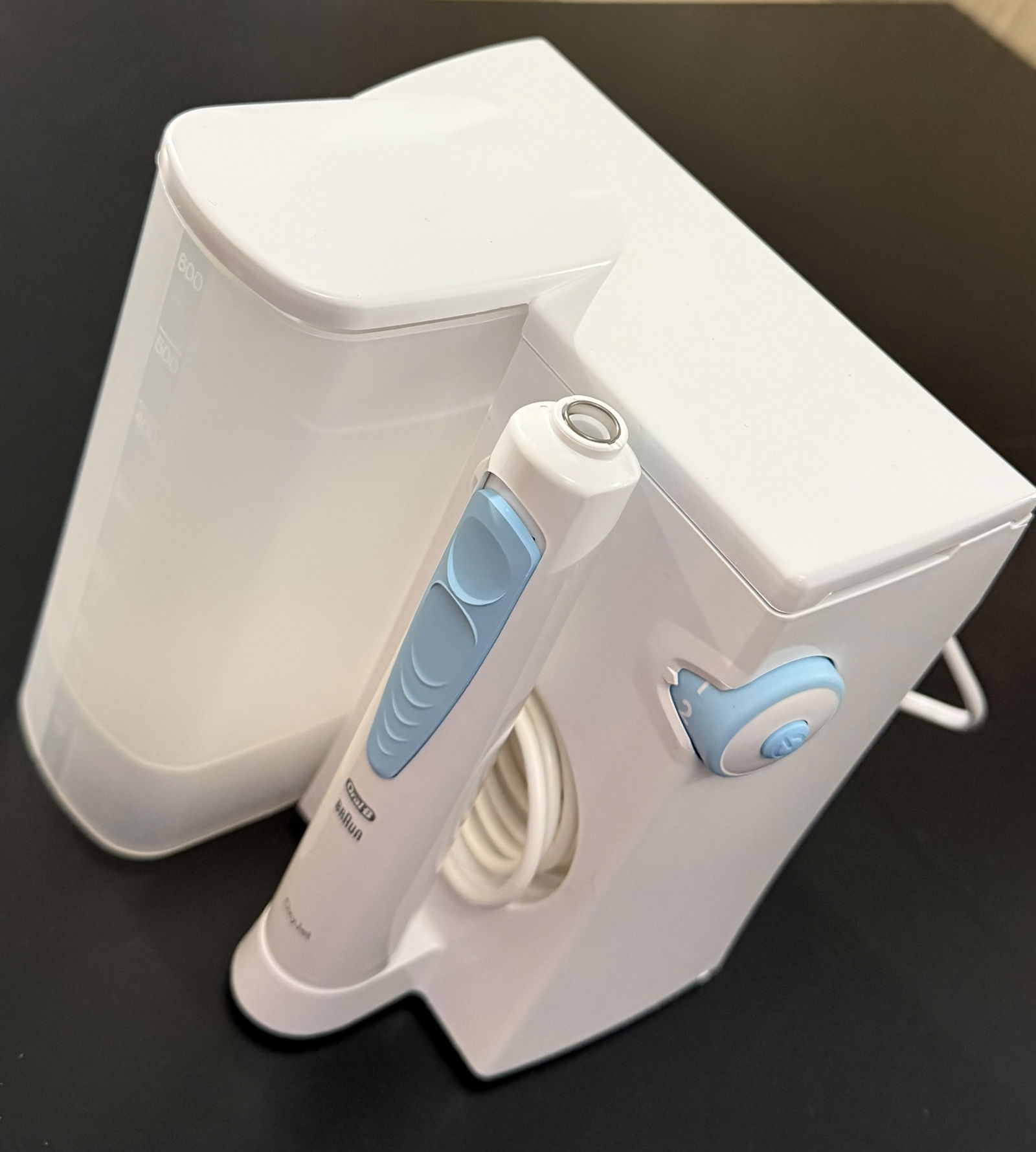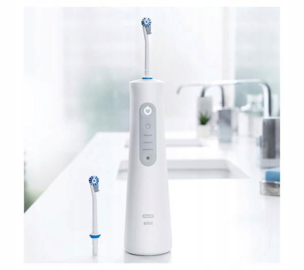 Irygator do jamy ustnej Oral-B Oral Health Centre, szczoteczka międzyzębowa do delikatnego czyszczenia zębów i zdrowszych dziąseł, z technologią Oxyjet, 5 poziomów ciśnienia do pielęgnacji zębów, biało-niebieski