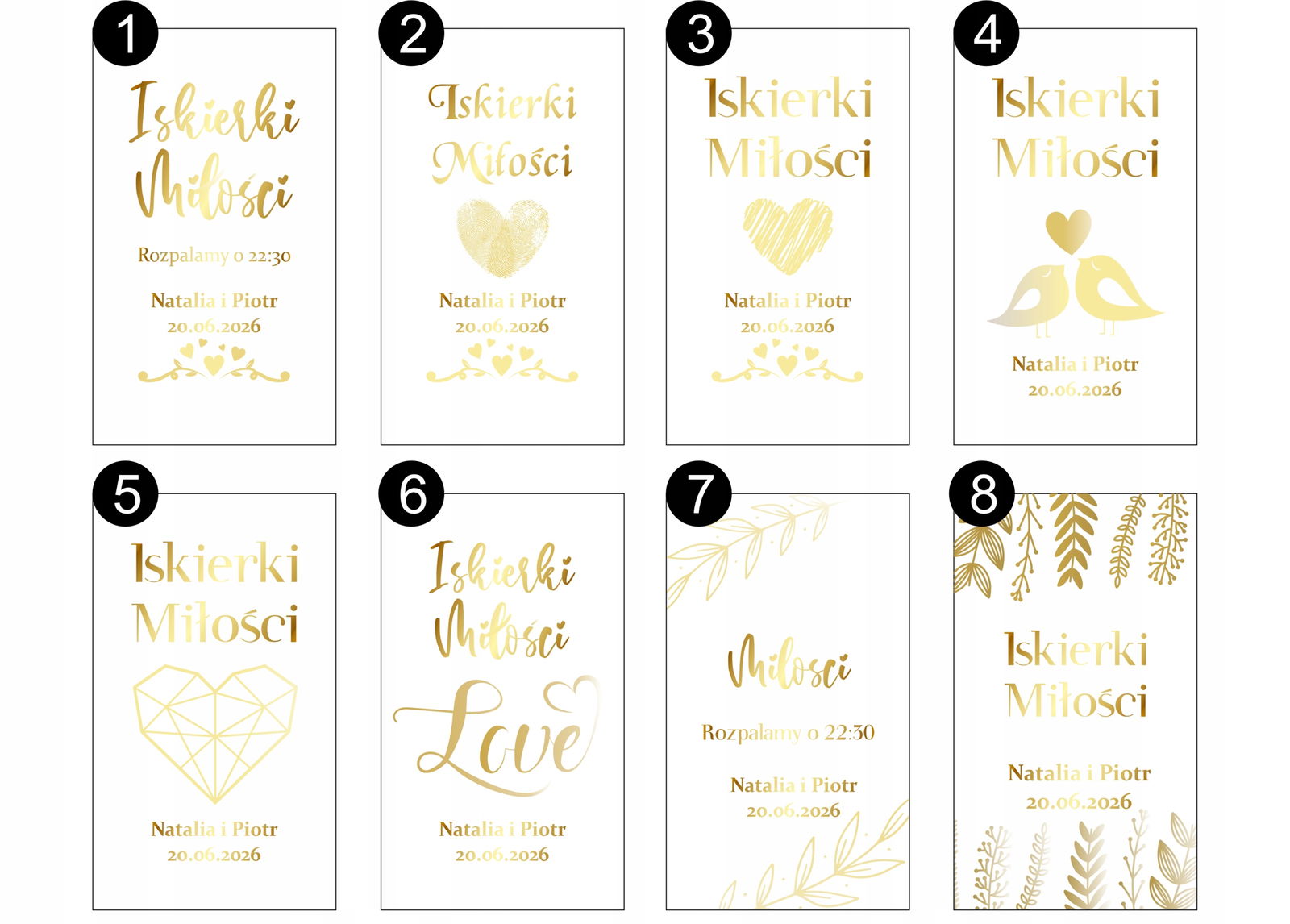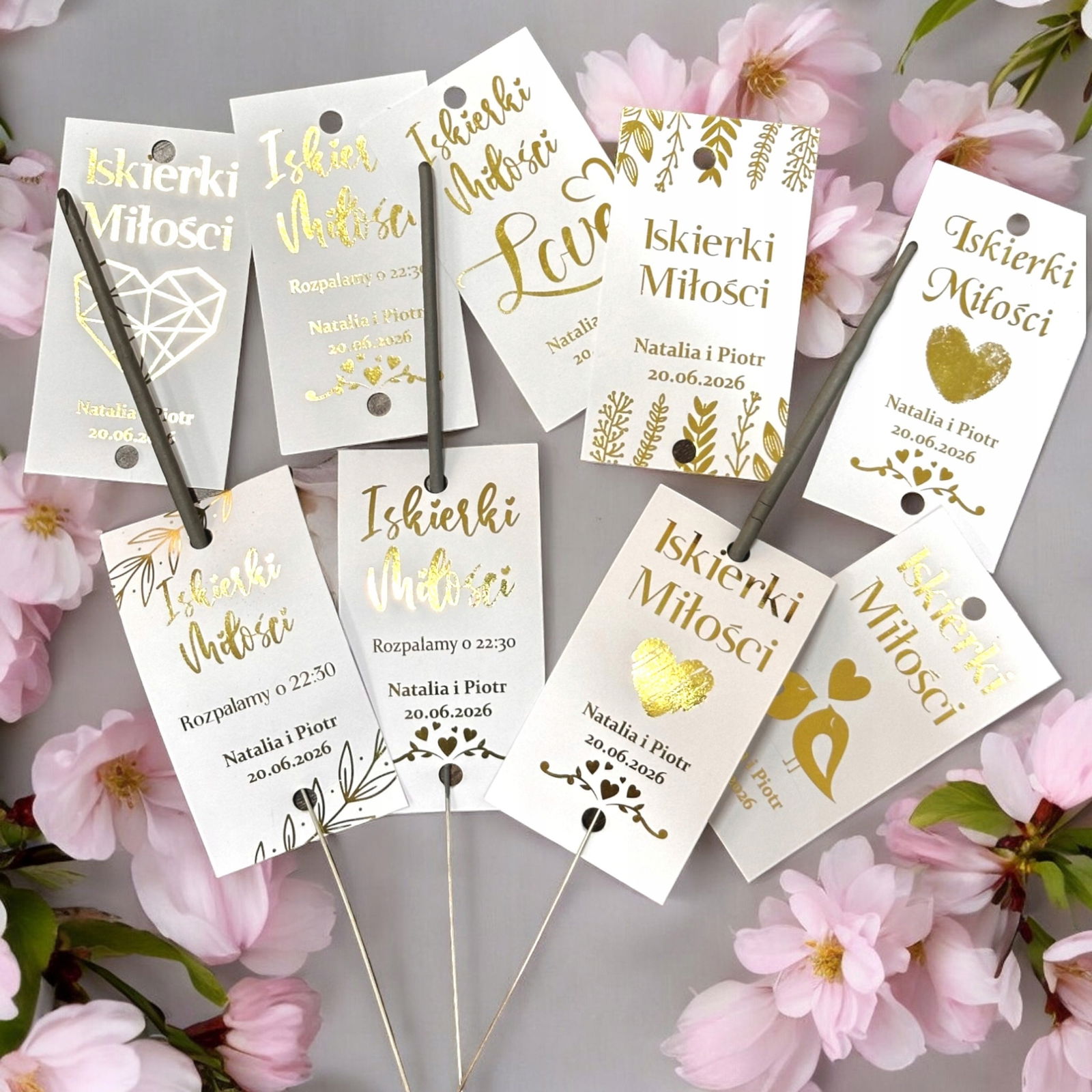 Nakładki spersonalizowane na zimne ognie złocone ( bez zimnych ogni ).