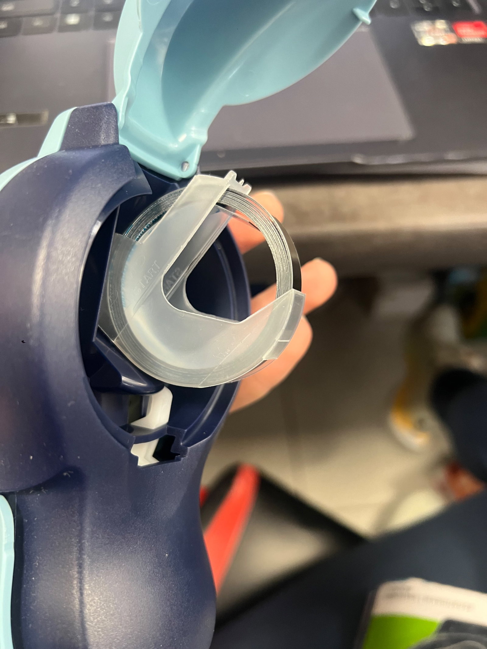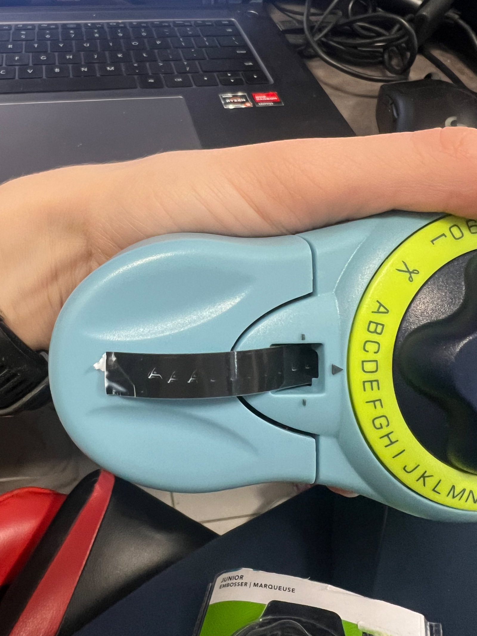 Cechy produktu: Posiada ślady użytkowania, Realne zdjęcia w galerii, Uszkodzony - BARDZO SŁABO WYTŁACZA LITERY I NIE ODCINA TAŚMY