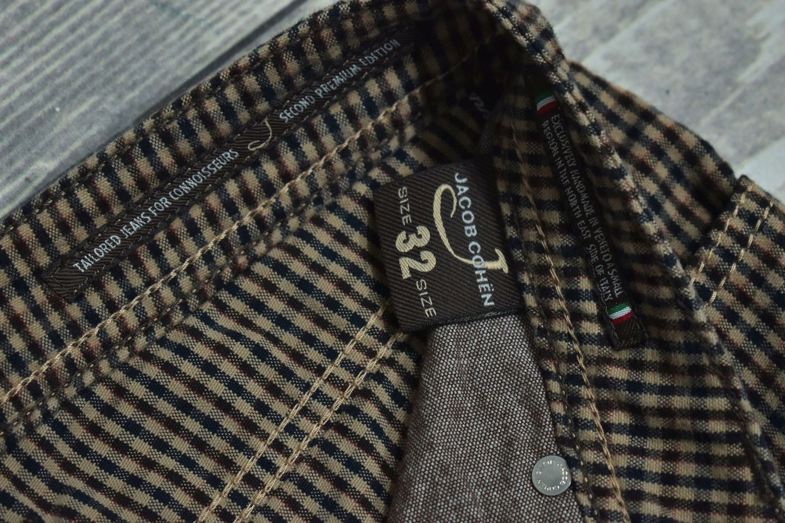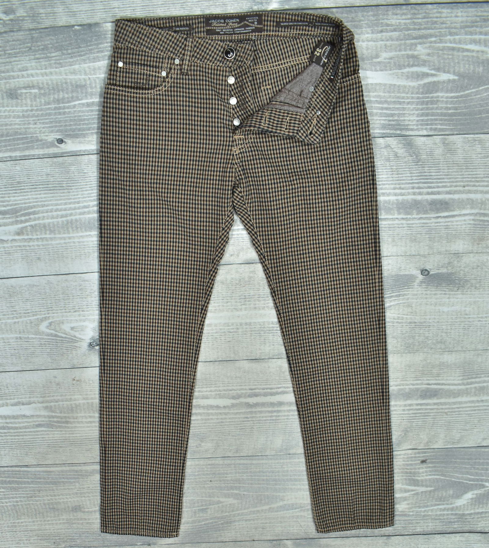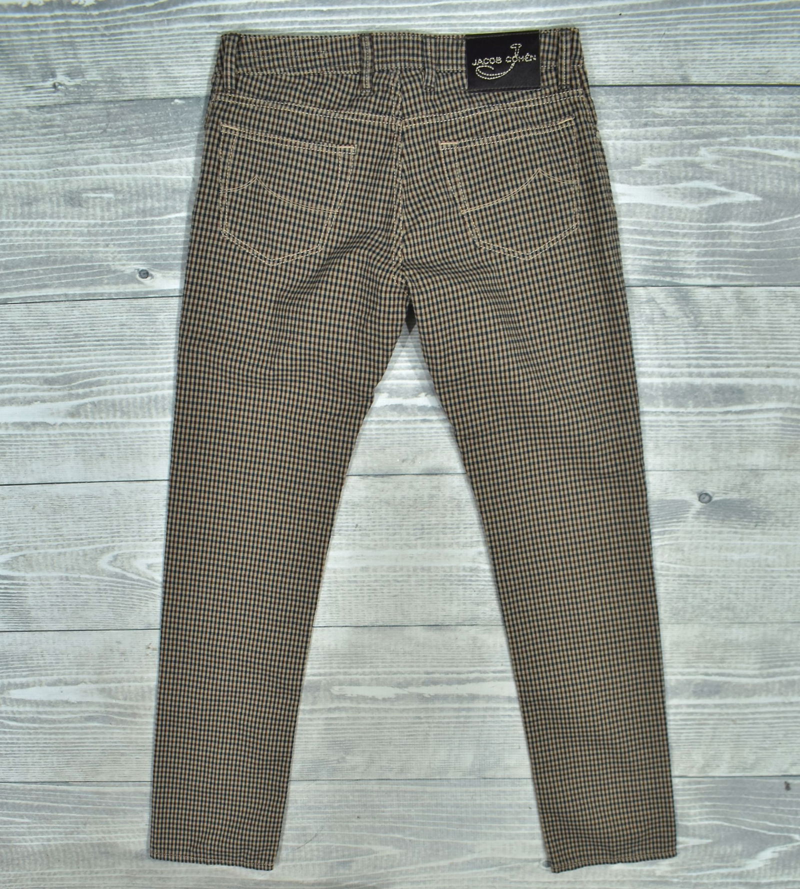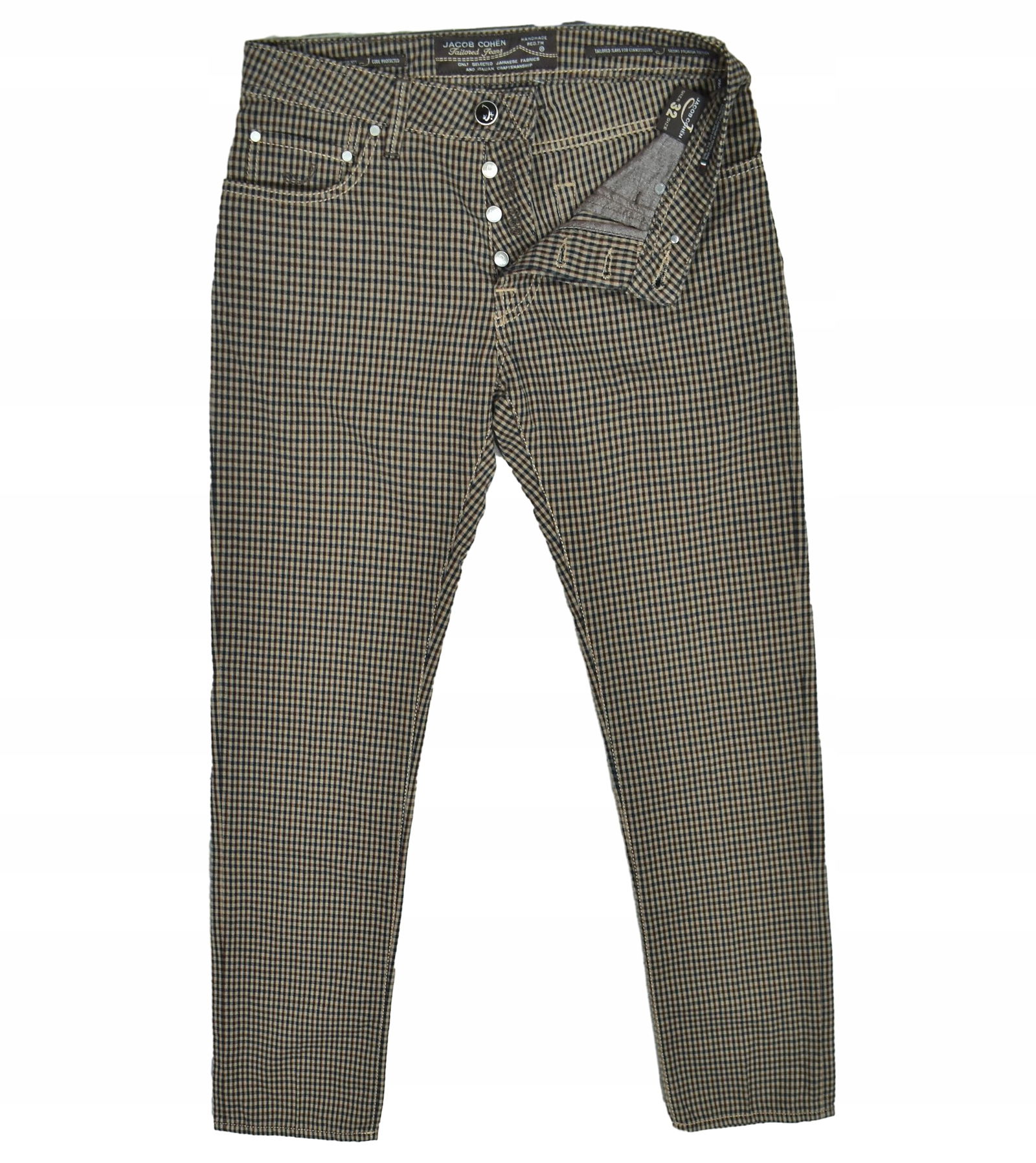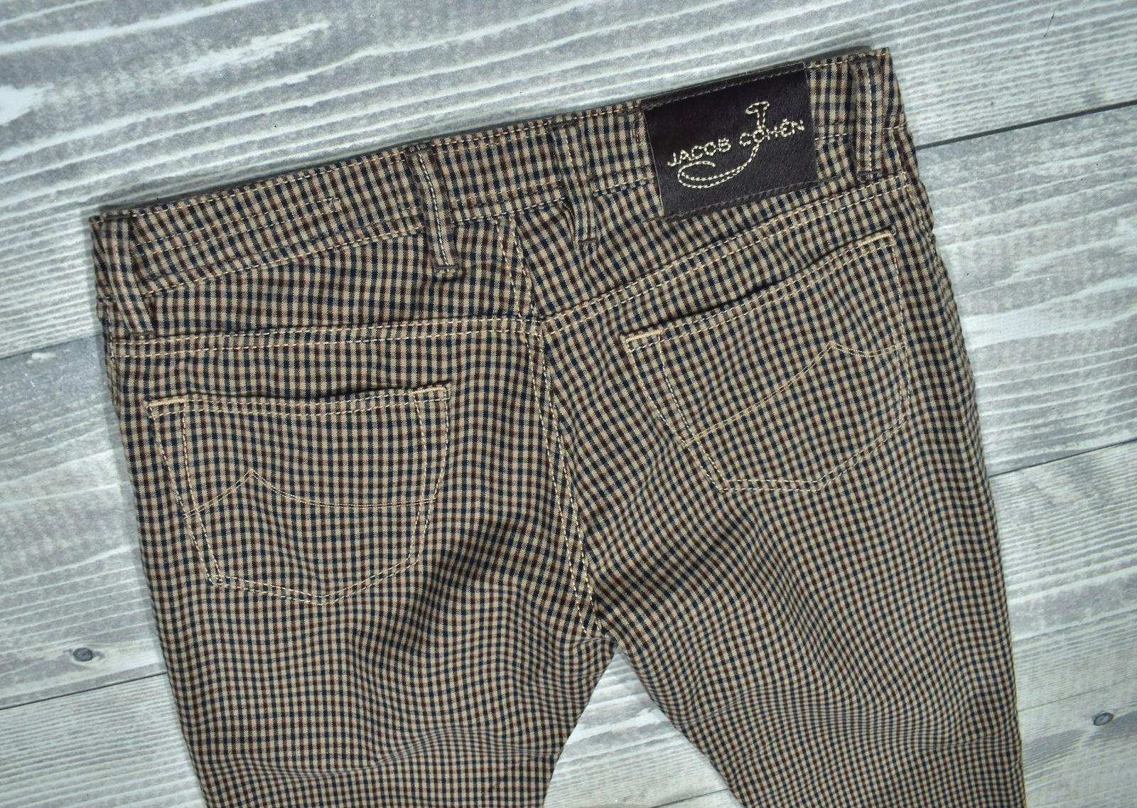 JACOB COHEN Type 688 Materiałowe Spodnie w Delikatną Kratkę Vichy 32