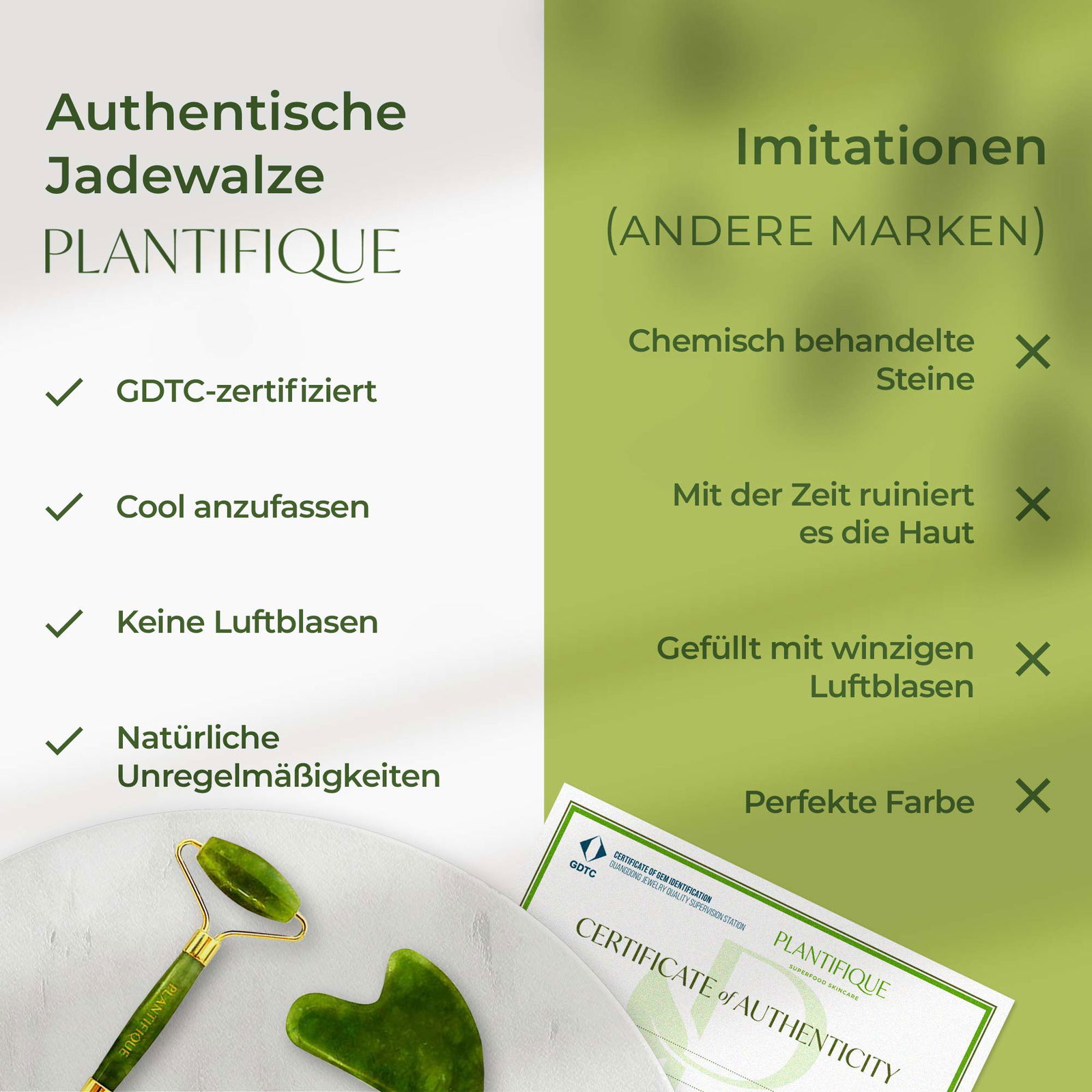 Planfique Jade Roller i Gua Sha składa się z najwyższej jakości i prawdziwej jadey.