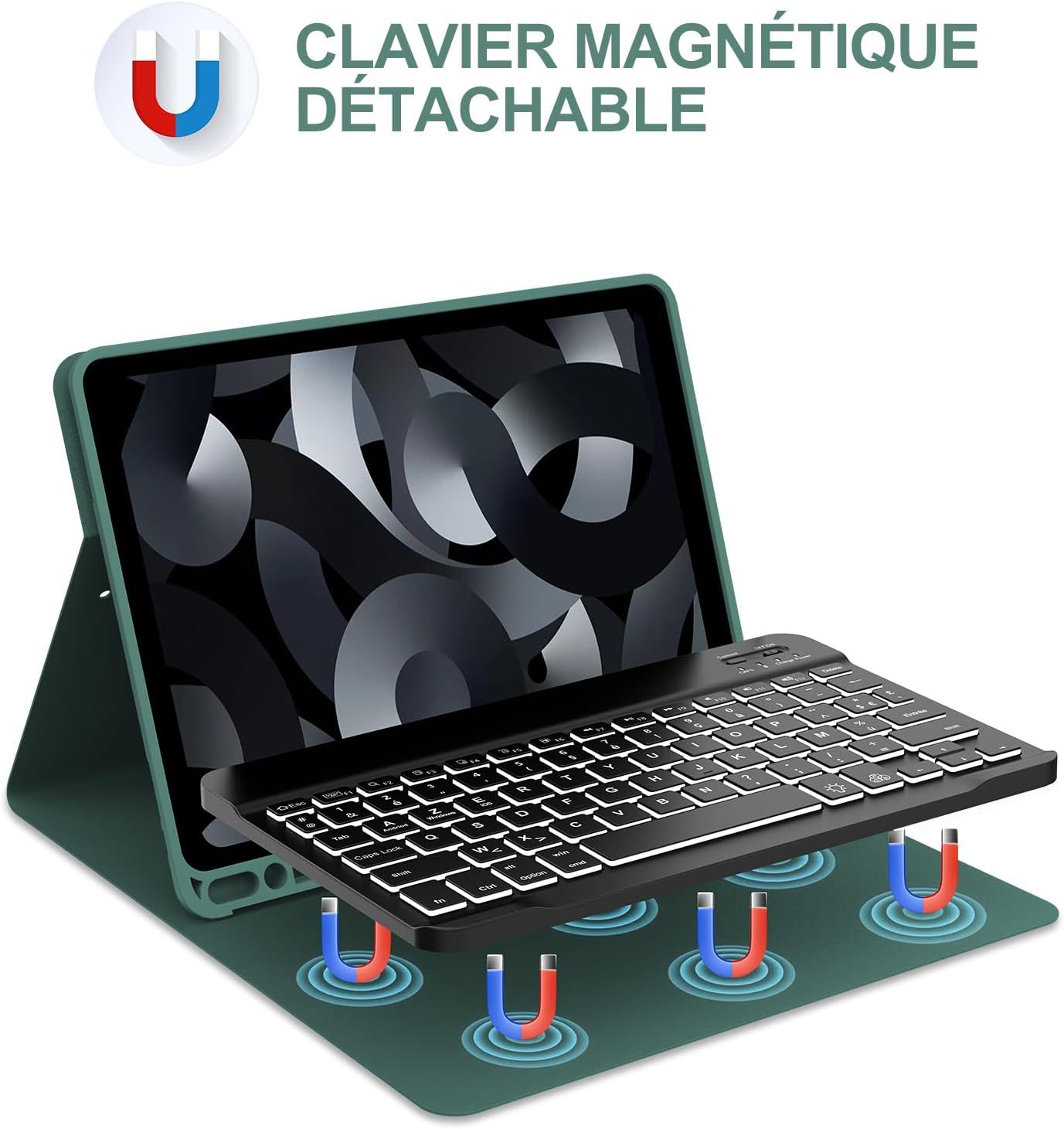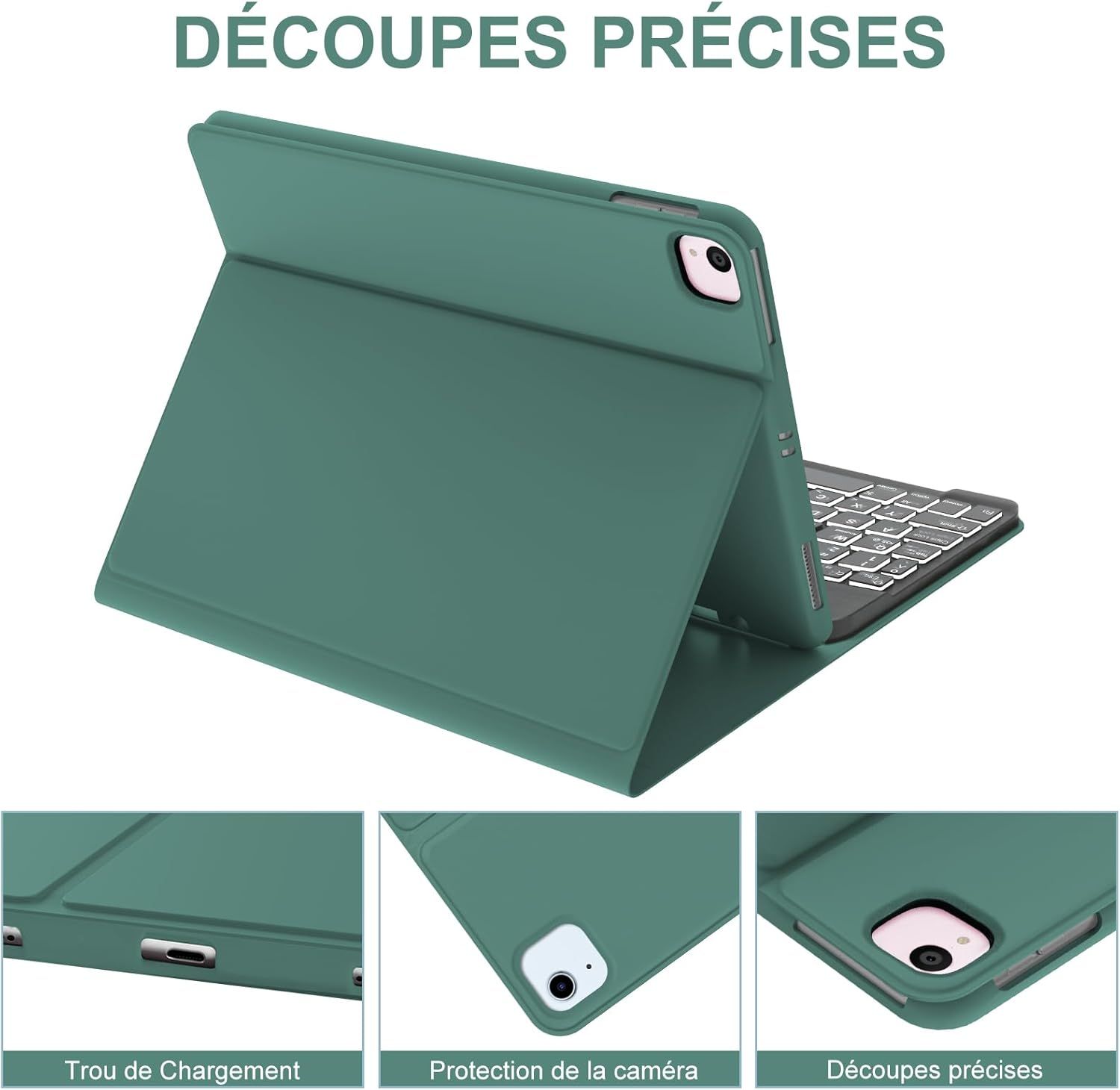 - Klawiatura Bluetooth AZERTY: Klawiatura wykorzystuje najnowszą technologię połączenia Bluetooth, aby uzyskać superszybkie i stabilne połączenie z iPadem Air 5, o zasięgu do 10 m