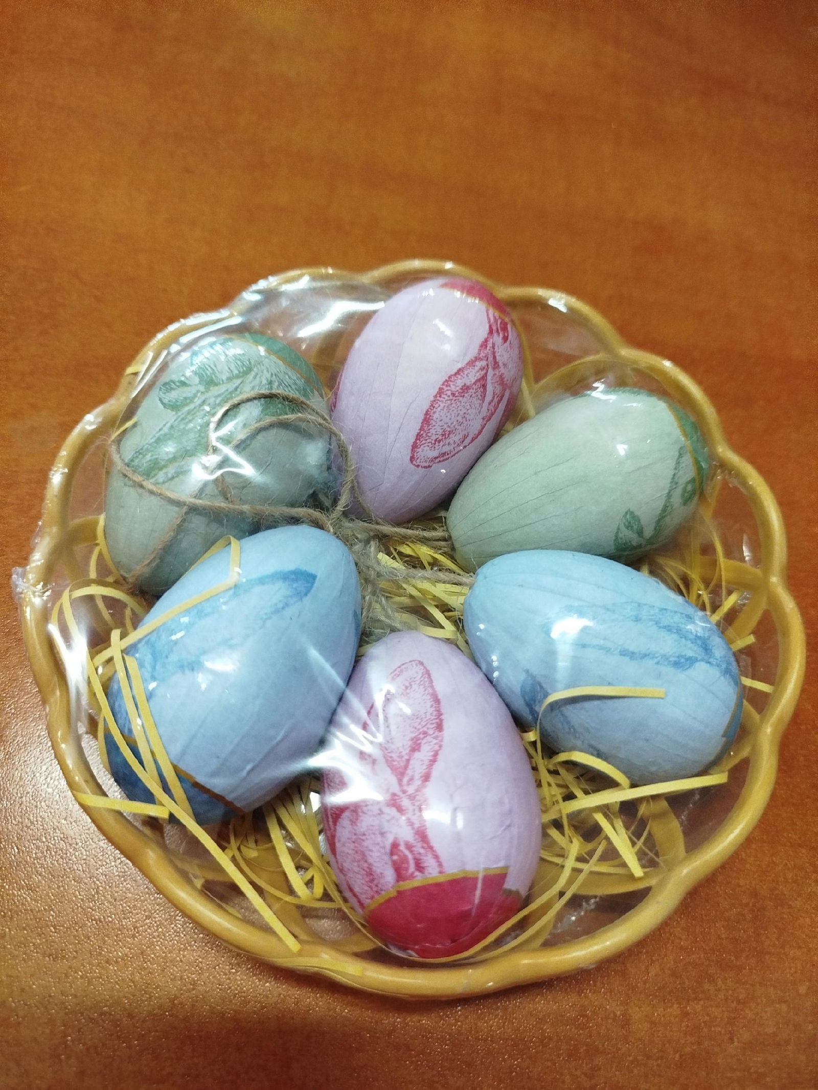 Zestaw 6 jajek wielkanocnych w koszyczku – dekoracja świąteczna