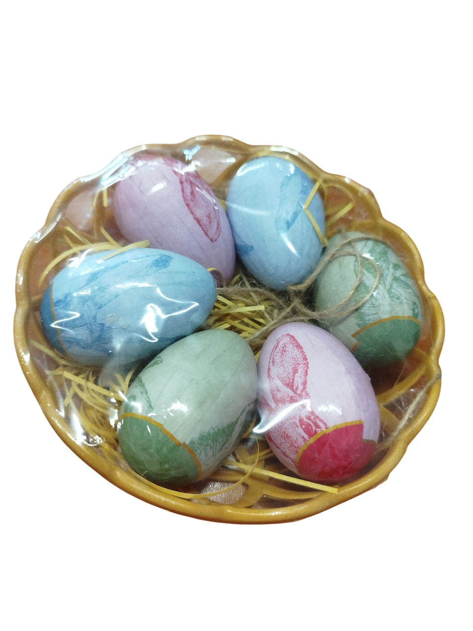 Zestaw 6 jajek wielkanocnych w koszyczku – dekoracja świąteczna