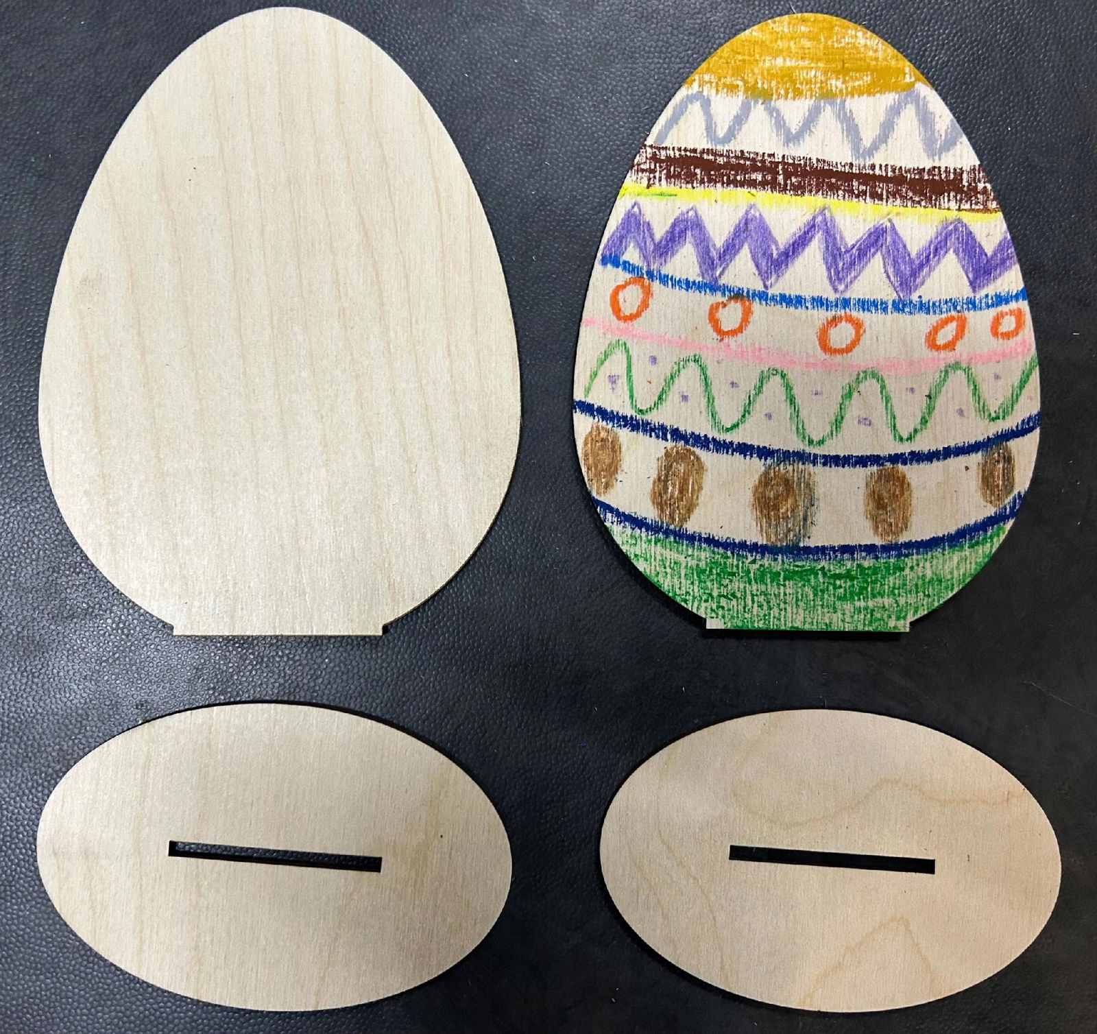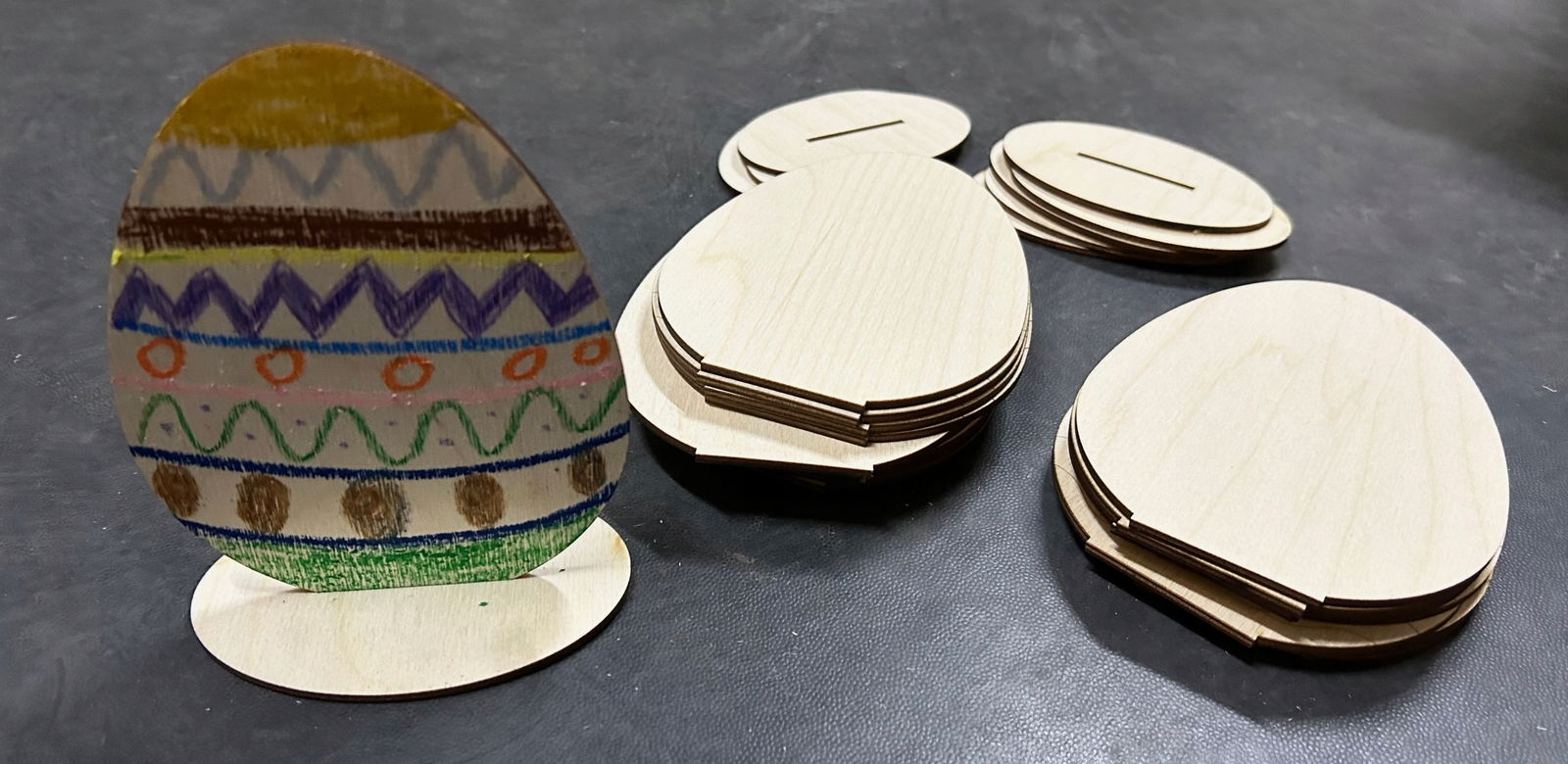 Drewniany jajko wykonane jest ze sklejki o grubości 3 mm.
