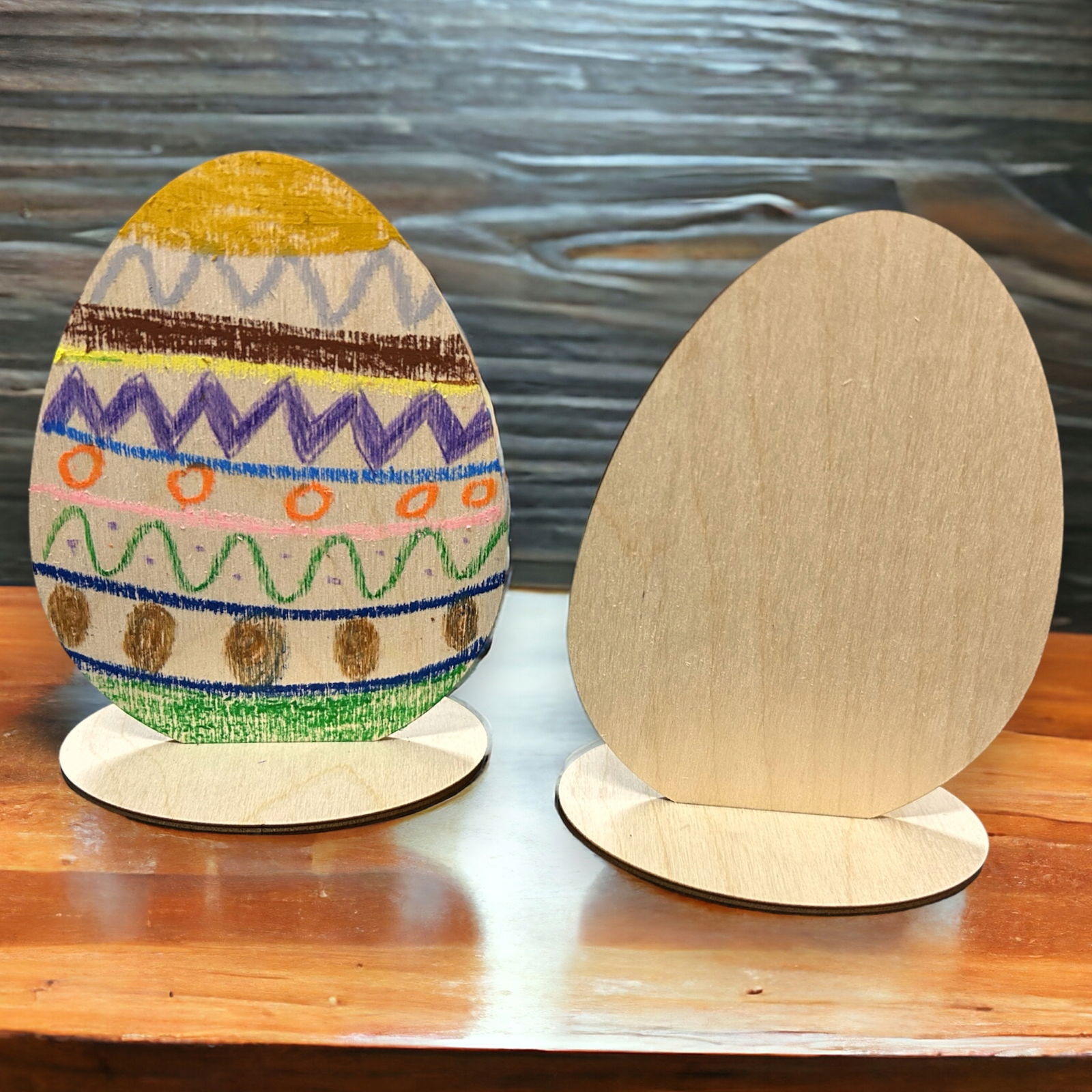 Drewniane jajko wielkanocne z podstawką świetnie nadaje się do ozdoby techniką decoupage. Dzieci mogą pomalować pisankę ze sklejki, co nada jej niepowtarzalnego wyrazu. Ponadto ozdobiona pisanka wielkanocna będzie idealnym prezentem dla bliskiej osoby. Do jajka wielkanocnego z drewna będzie pasował baranek wielkanocny z podstawką. Całość wzbogaci wystrój wnętrza w okresie Wielkanocnym
