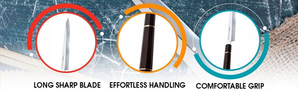 ✅ Precyzyjne cięcie - Długie, wąskie ostrze Sakimaru/Takobiki umożliwia jednolite i dokładne cięcia.