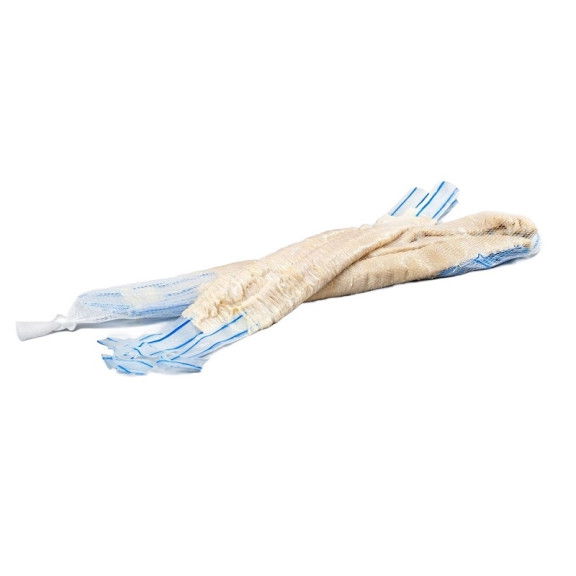 W jednym opakowaniu zasolonych jelit z ilością 15 metrów znajduje się ok. 5 szt. pasków spakowanych w siatkę.