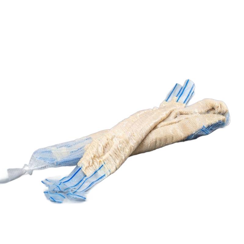 Przed użyciem należy jelito wyjąć z siatki ale nie zdejmować z paska .