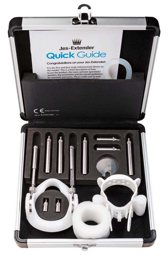 Dla trwałego powiększenia penisa! Poszerzacz do bezbolesnego powiększania penisa i pasek komfortowy. Nadaje się do penisa o długości 5-24 cm i działa z siłą 900-1500 g. Z filmem wyjaśniającym online. Wraz z walizką do przechowywania i 2 latami gwarancji.