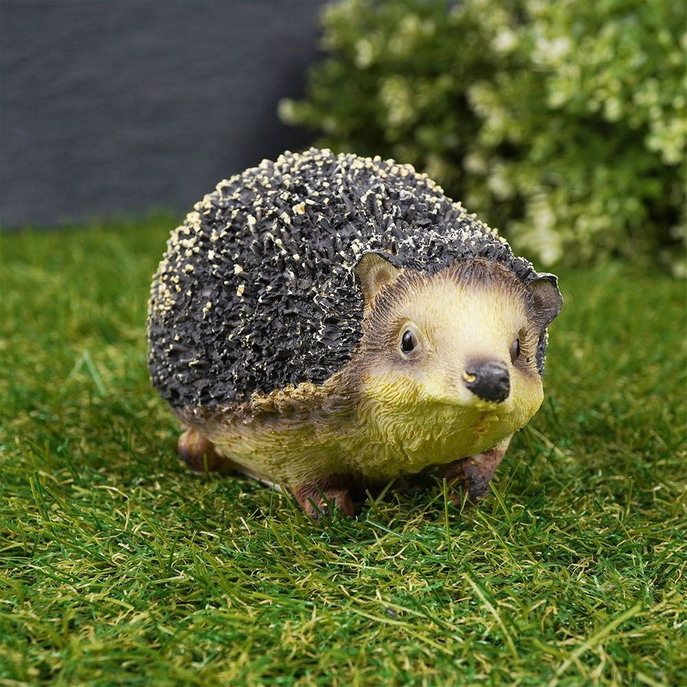 Figurka ogrodowa w kształcie jeża. Jest świetnym pomysłem na wyjątkową ozdobę ogrodu. Doskonale sprawdzi się także jako ozdoba balkonu lub tarasu. Posiada uroczy wygląd, który zachęci najmłodszych do przebywania w ogrodzie. Wykonana solidnie, a użyte materiały są odporne na warunki atmosferyczne, dzięki czemu figurka może przebywać na zewnątrz również zimą.