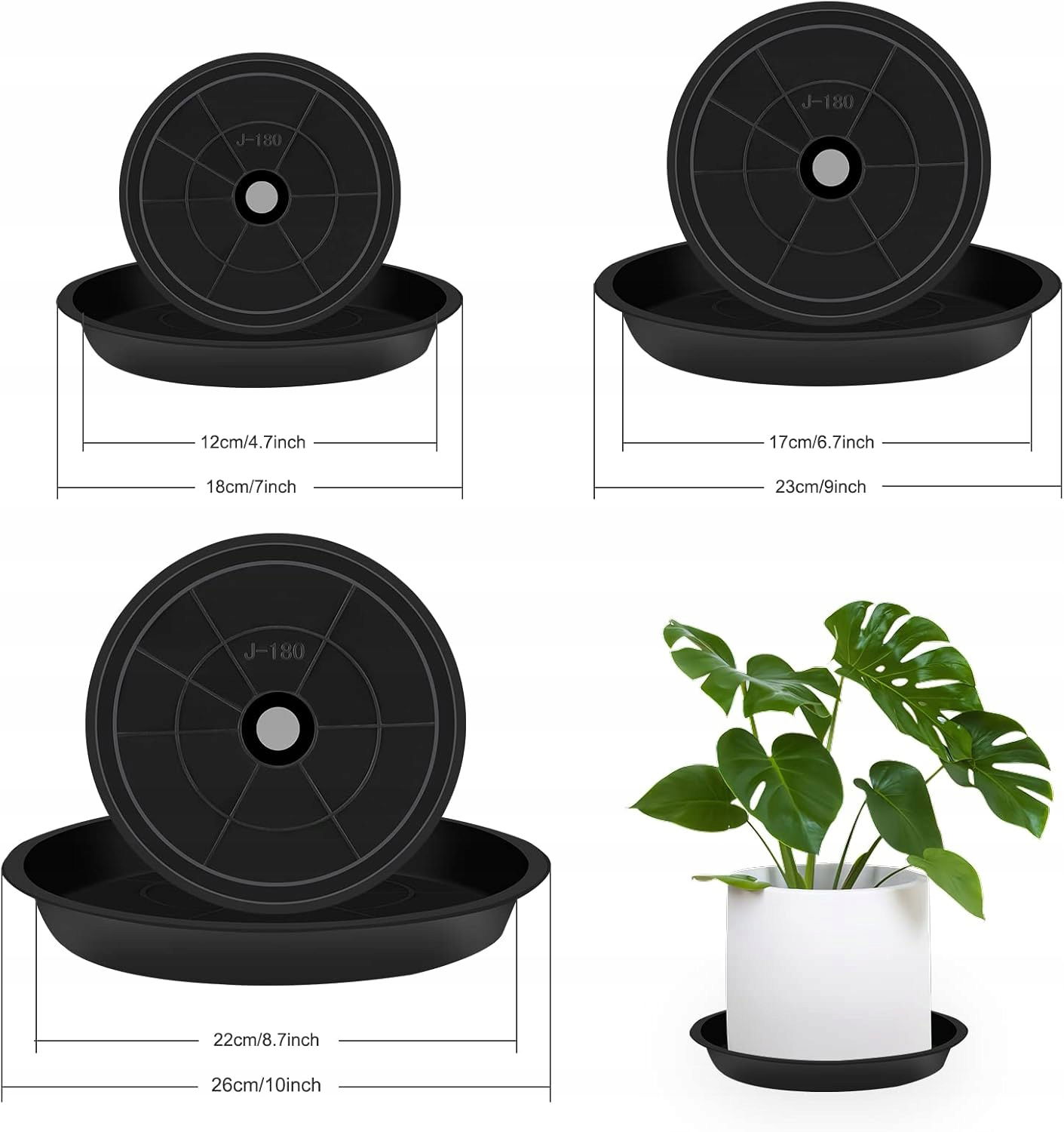 JIELISI plastikowe podstawki pod doniczki 3 rozmiary, 11 sztuk, czarne OPIS