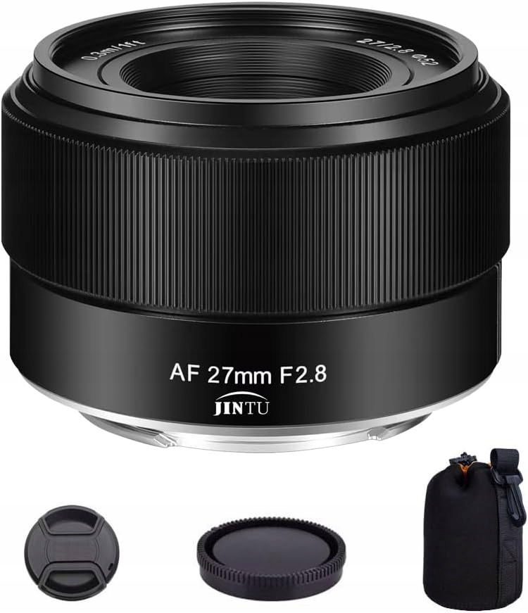 Obiektyw JINTU 27 mm F2.8 z autofokusem to kompaktowa, lekka i solidnie wykonana konstrukcja, idealna dla miłośników fotografii krajobrazowej, architektonicznej oraz codziennych ujęć. Wykonany z aluminium lotniczego, z czarną obudową i srebrnymi oznaczeniami, łączy styl retro z nowoczesną technologią optyczną.